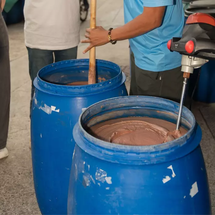 體驗關鍵的「反蝦醬日曬」過程,並在職人指導下體驗「人手攪拌蝦醬」。