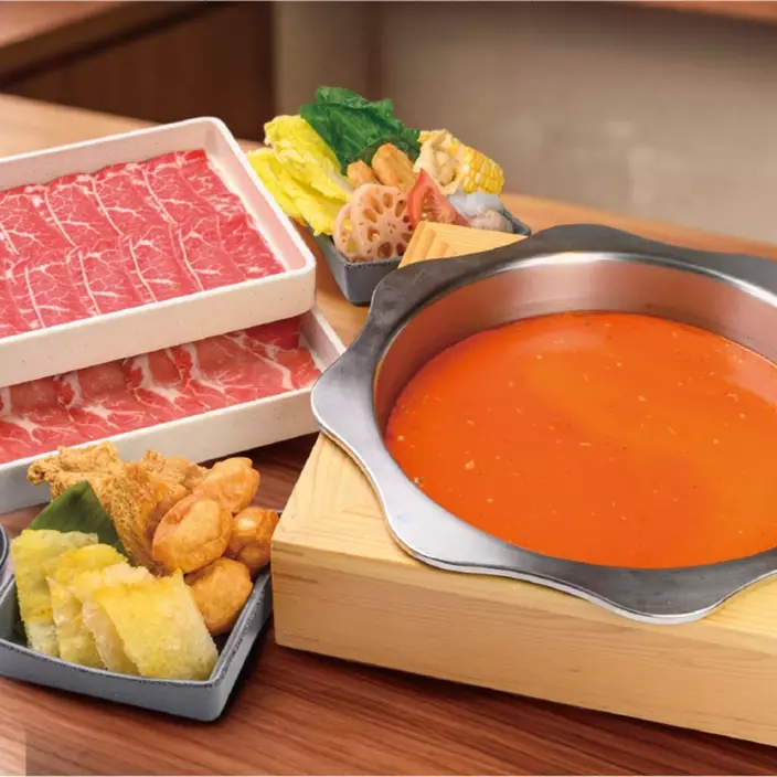 利用蝦膏的高度濃縮鮮味,與沙嗲湯底的辛香厚度結合,呈現風味直達、回味持久的濃郁火鍋體驗