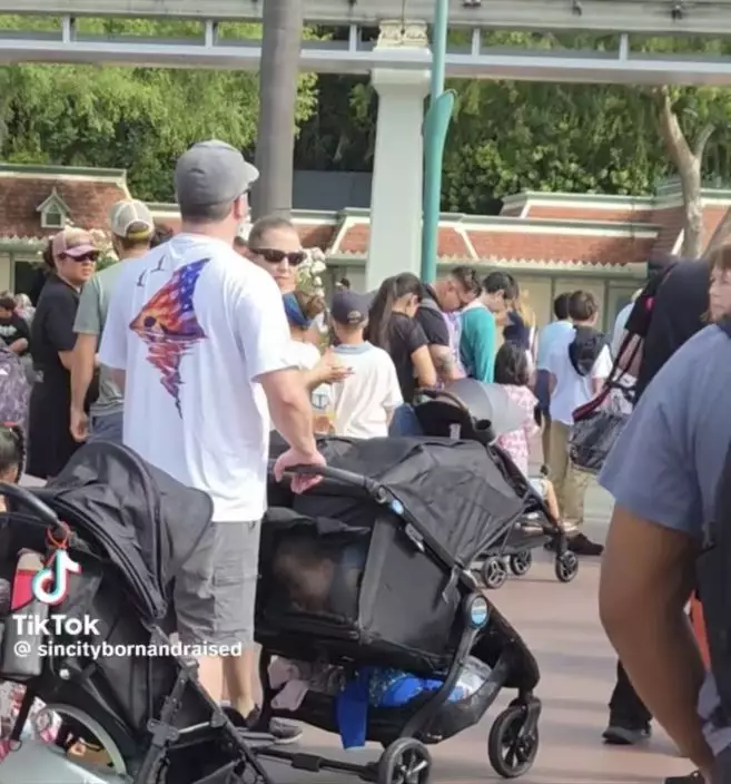 夫婦疑因美國迪士尼樂園門票昂貴將孩童藏嬰兒車企圖「偷渡」入園。TikTok圖片