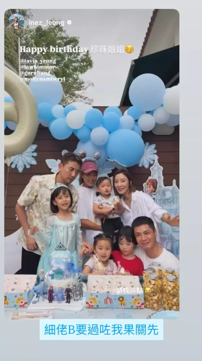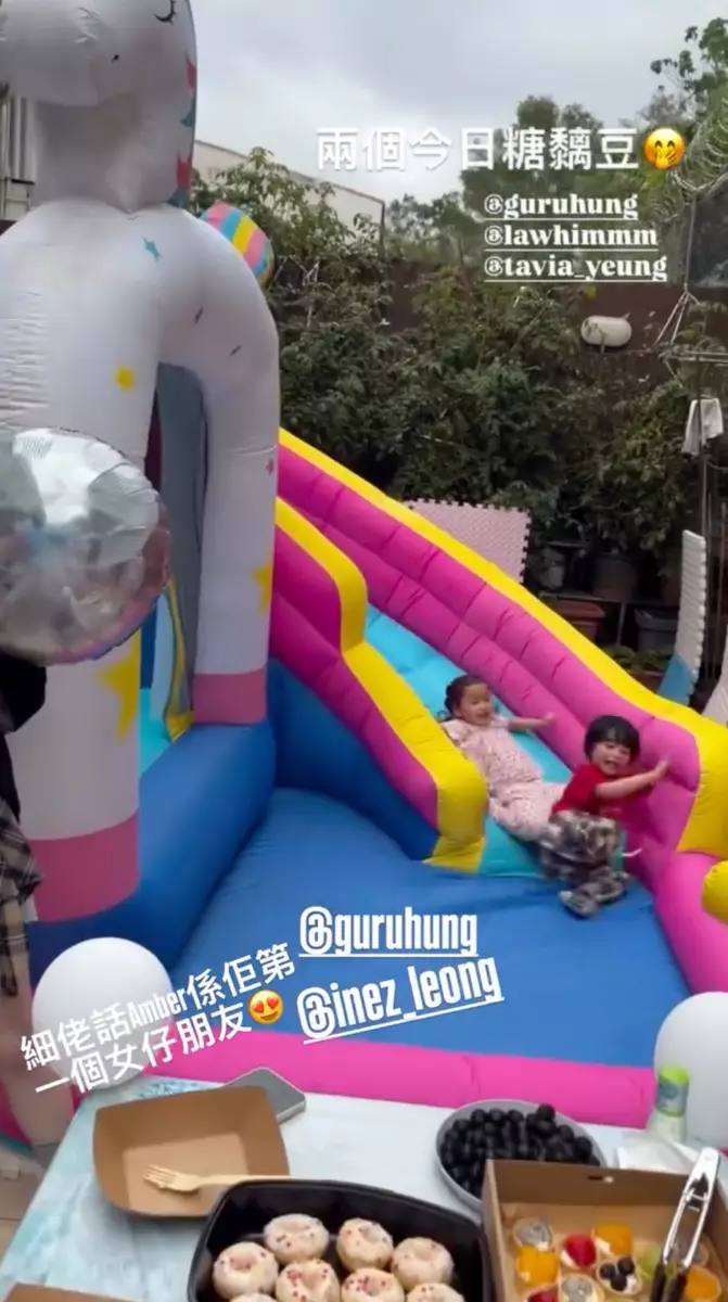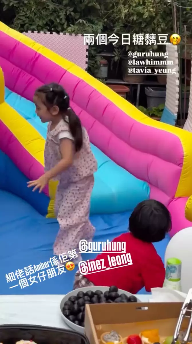 梁諾妍在IG Story分享小珍珠生日會的照片及影片,可見小珍珠穿上公主衫,頭戴小皇冠,五官越大越精緻,完美遺傳父母的優良基因,相當靚女!小壽星與一大班小朋友玩得她開心,但當中見到小珍珠弟弟Eden與洪永城大女Amber玩得特別親密,宛如糖黐豆,楊茜堯更大爆:「細佬話Amber係佢第一個女朋友仔!」