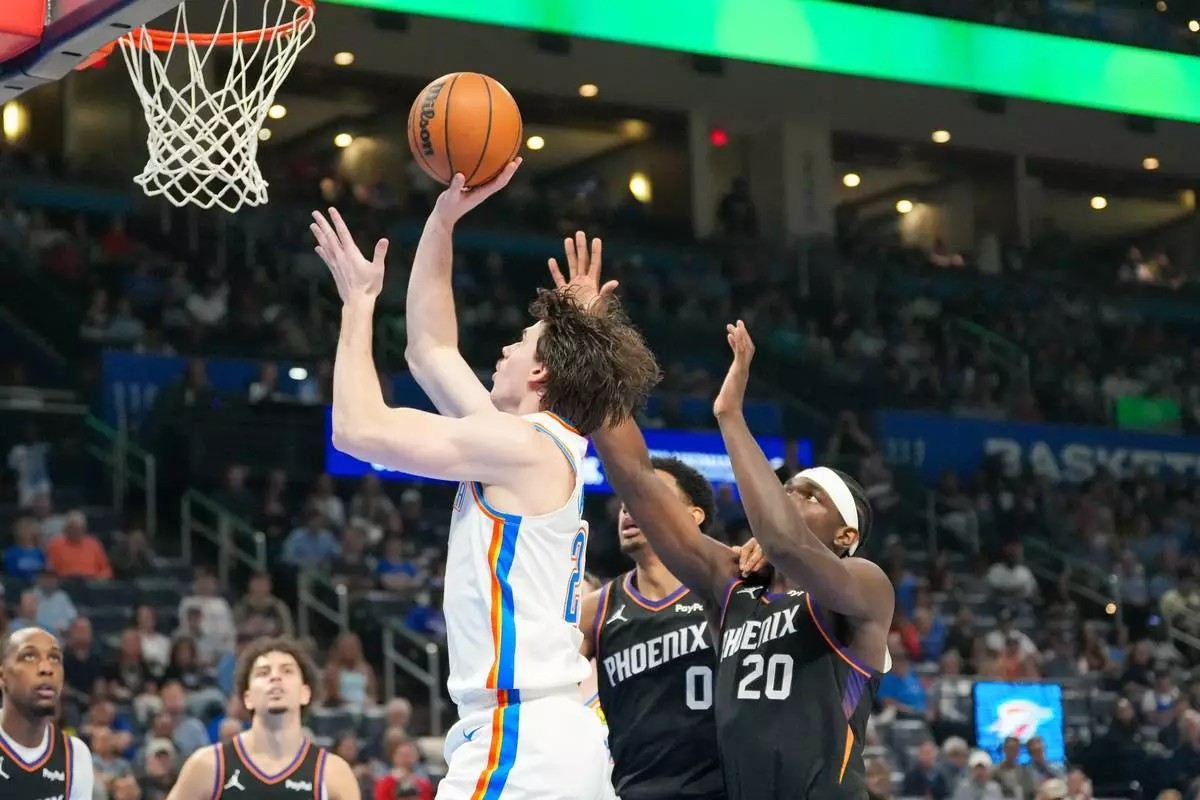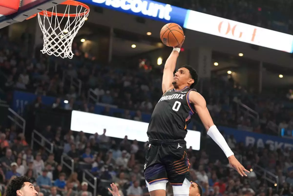 奧克拉荷馬城訊:NBA常規賽周日晚舉行煞科戰,鳳凰城太陽隊(Phoenix Suns)在查馬利布耶亞(Jamaree Bouyea)攻入生涯新高27分及送出9次助攻,以及賴恩鄧恩(Ryan Dunn)貢獻20分及11個籃板下,以135比103大勝奧克拉荷馬城雷霆隊(Oklahoma City Thunder)。這場比賽對兩隊而言均屬無關痛癢。