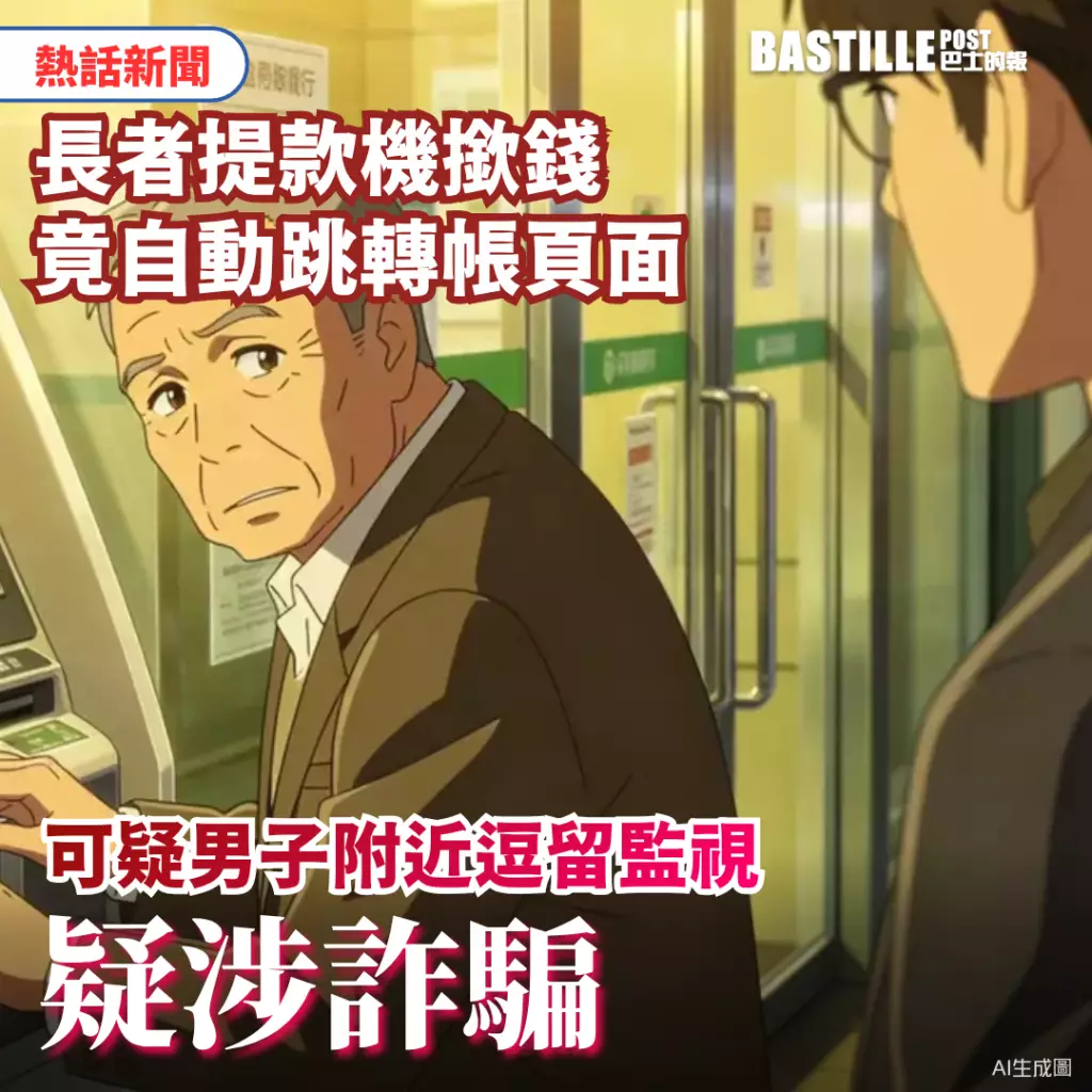 騙徒手法層出不窮。近日有網民分享一宗懷疑自動櫃員機(ATM)騙案,指父親在提款時,提款機畫面竟自動跳至轉帳頁面,過程中有可疑男子在附近逗留監視,故出帖提醒各位長者使用提款機時,千萬要小心!