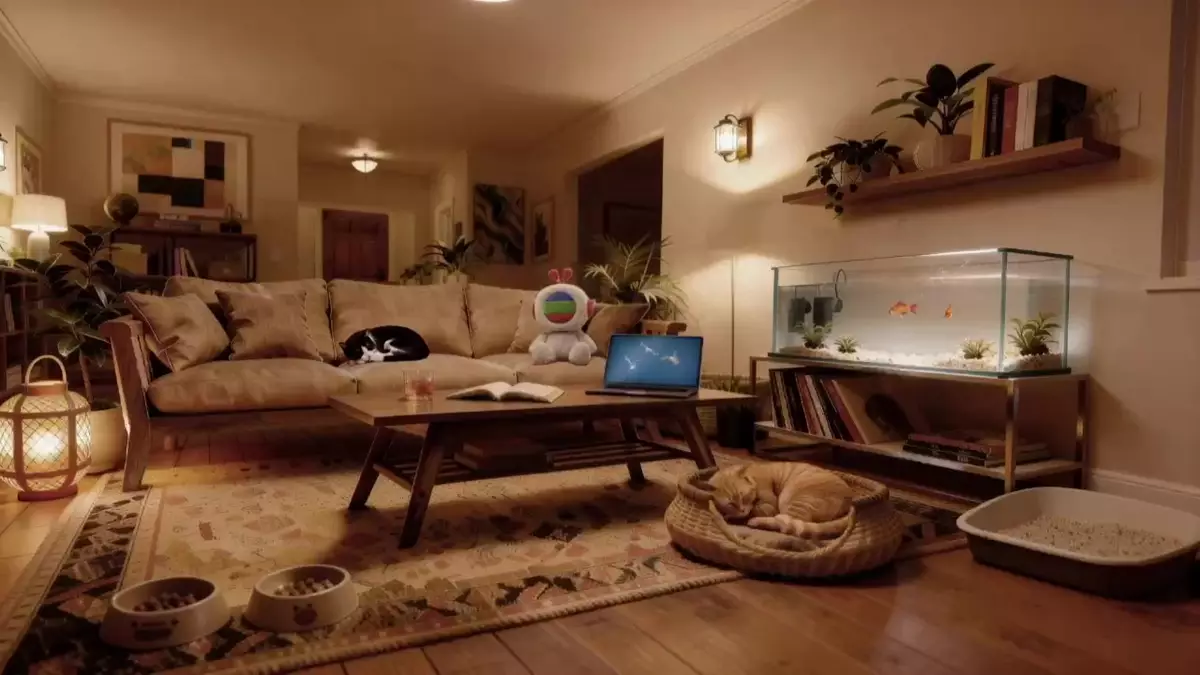 近日有網民發現,無綫電視明珠台深夜時段兩點有新搞作,由原本的《祝君晚安》火爐片、換成生活感十足的《貓咪小夜曲》(Purrfect Night),為了令觀眾睇得過癮,片段中還加入了不少心思細節,兩隻熟睡中的貓咪除會隨著呼吸節奏身體有起伏、還會打呵欠、食Mum Mum、自我清潔、打交甚至睇金魚,望落療癒感爆燈;另畫面中Notebook內的雀仔、以及魚缸內的金魚均會由頭郁到落尾,至於TVBuddy則會從頭到尾安坐梳化,配以精心挑選的柔和音樂,相當Peaceful!
