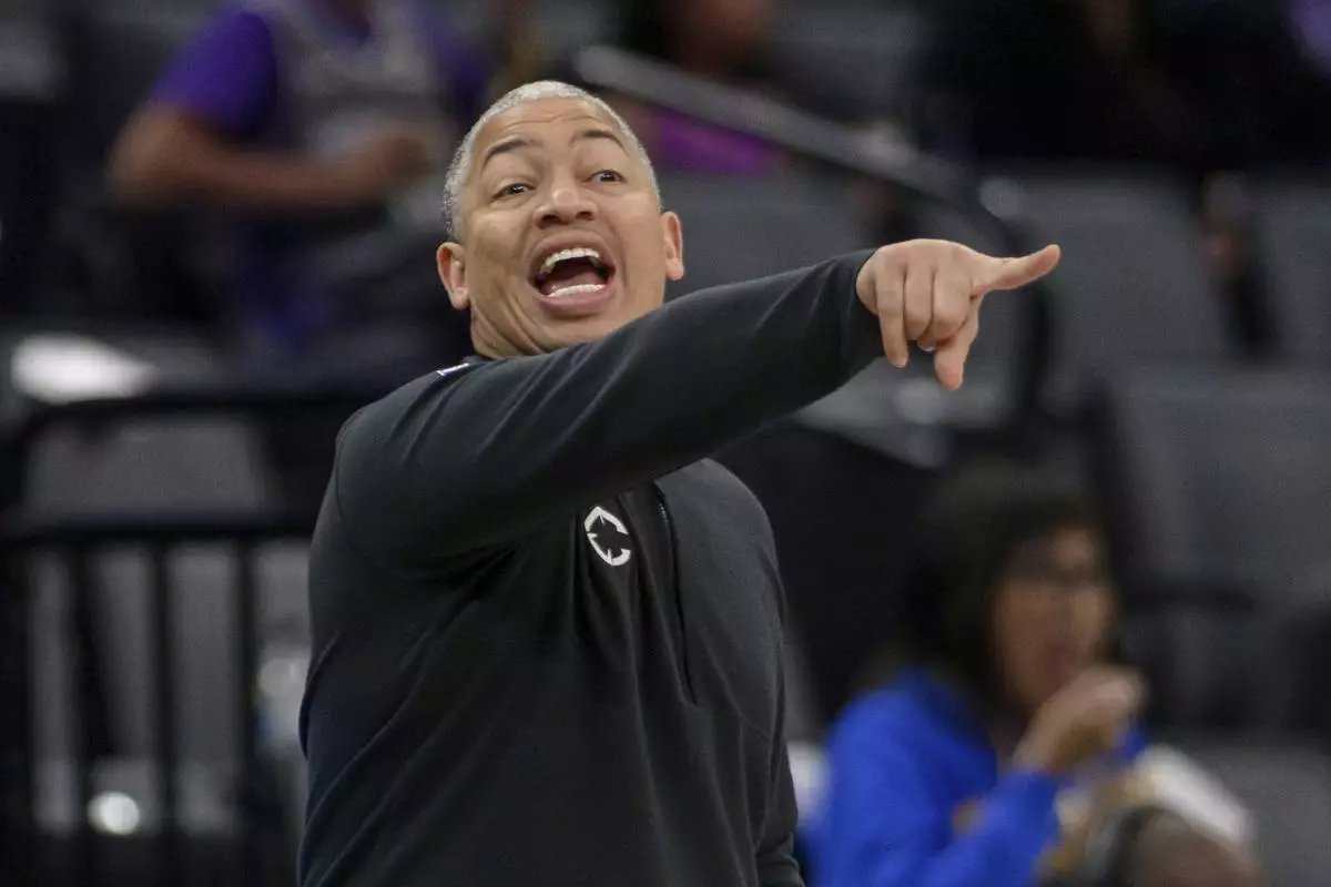 洛杉磯快艇(Los Angeles Clippers)主教練路爾(Tyronn Lue)在2026年4月5日(周日)於加州薩克拉門托舉行的一場NBA籃球賽下半場,在場邊向球員叫喊。 (美聯社圖片/Randall Benton) AP圖片