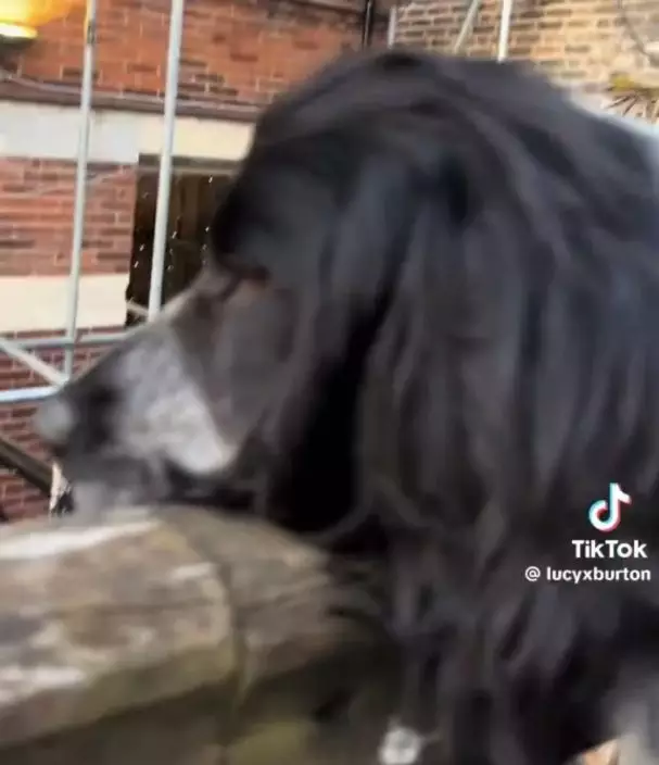 影片可見,身處餐廳內的露西透過窗戶拍攝,發現原本應留在家的Mini竟出現在餐廳外,神情激動地朝她叫喚。當時同場的寵物犬趴在欄桿旁觀望Mini,而Mini則刻意別過頭,表現出不滿情緒,似乎對全家外出唯獨牠被留家中感到不滿。露西的伴侶見狀隨即上前安撫,將Mini抱起並輕撫安慰,再帶回座位照顧牠的情緒。