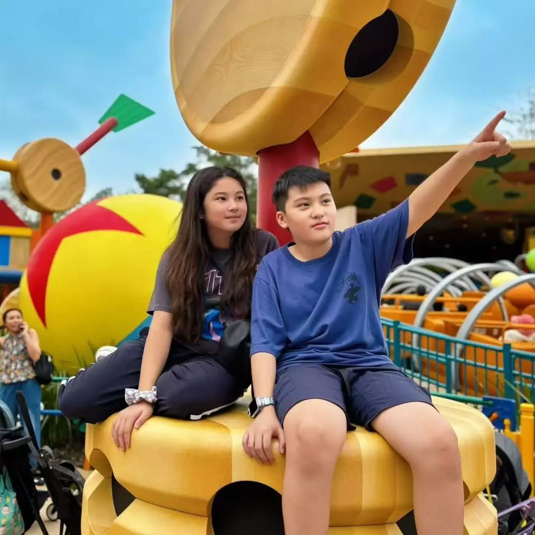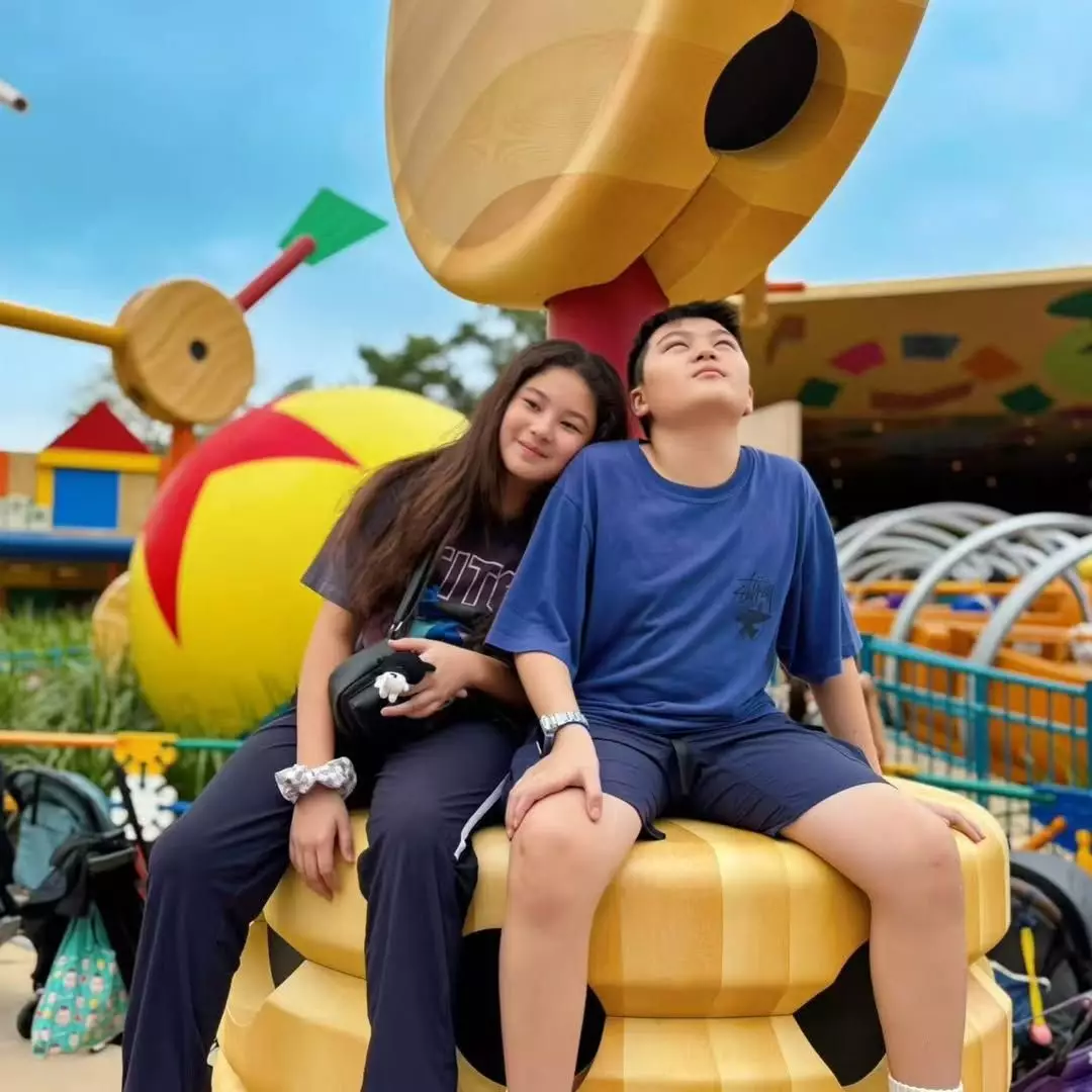 鄭希怡在IG晒出和老公帶囡囡到主題樂園慶生的照片及影片,並留言:「壽星女11歲生日之旅,迪士尼!開心,盡興!煙花好靚!」可見除了鄭希怡一家三口,同行還有梁浸浸的朋友仔,以及陳國坤與黃依汶的囝囝陳真。梁浸浸與陳真自幼一齊成長,感情似姊弟,相中梁浸浸把頭挨在陳真膊頭上,少女感十足,畫面亦溫馨有愛!