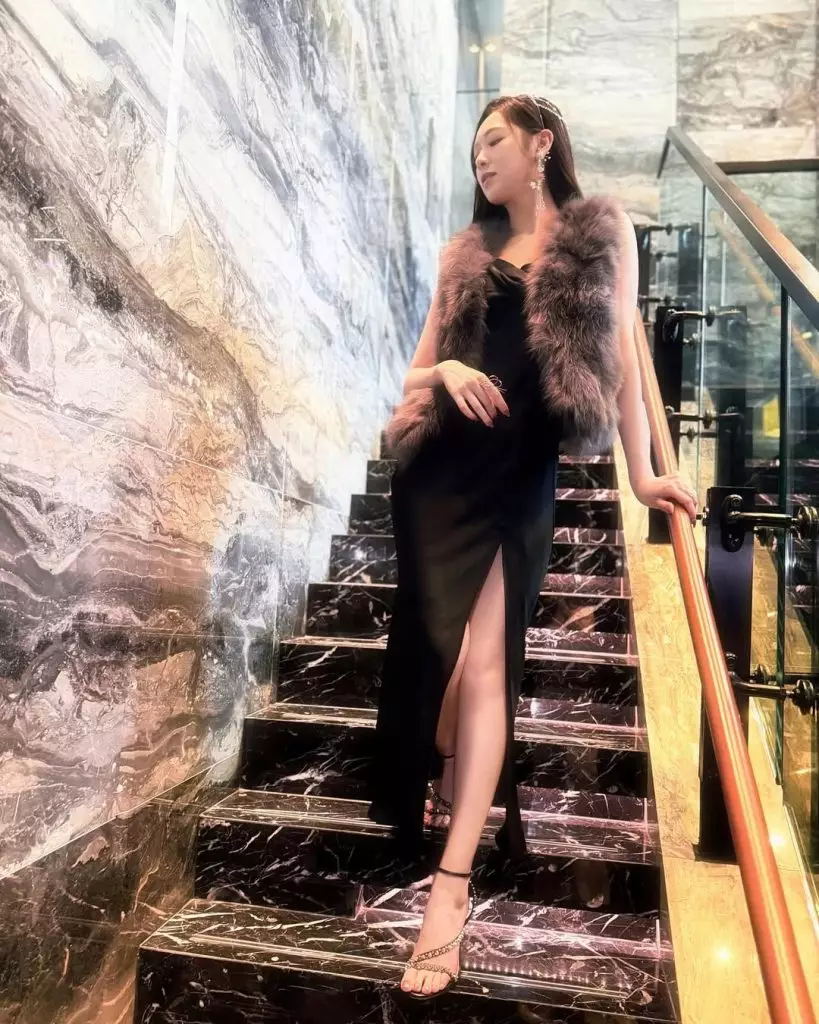藝人馮盈盈積極轉型主力司儀工作,同時活躍社交平台大派福利。日前她上載出席時裝活動的照片,身穿黑色絲緞開衩長裙,貼身剪裁凸顯玲瓏浮凸好身材,裙襬高開衩設計令修長美腿若隱若現,肩上披著灰棕色毛絨披肩,增添奢華貴氣,配上精緻面容,獲網民激讚知性優雅,狀態大勇。