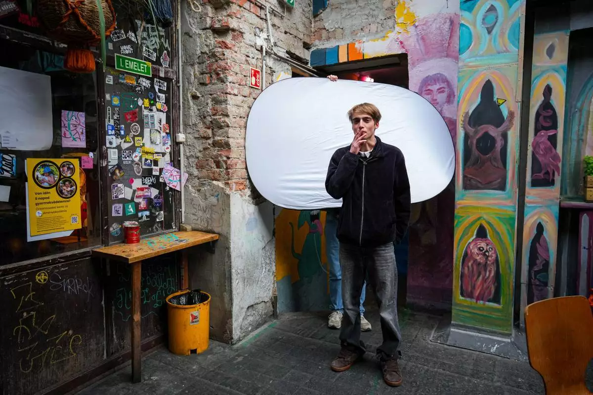 22歲的古斯塔夫·科馬羅米(Gusztav Komaromy)於2026年4月13日周一在匈牙利布達佩斯吸煙時拍攝肖像。「我們有一個控制我們生活和政治意識的政權。我們必須對宣傳、政治犬儒主義以及公共領域的現狀表明立場。」(美聯社圖片/Petr David Josek) AP圖片