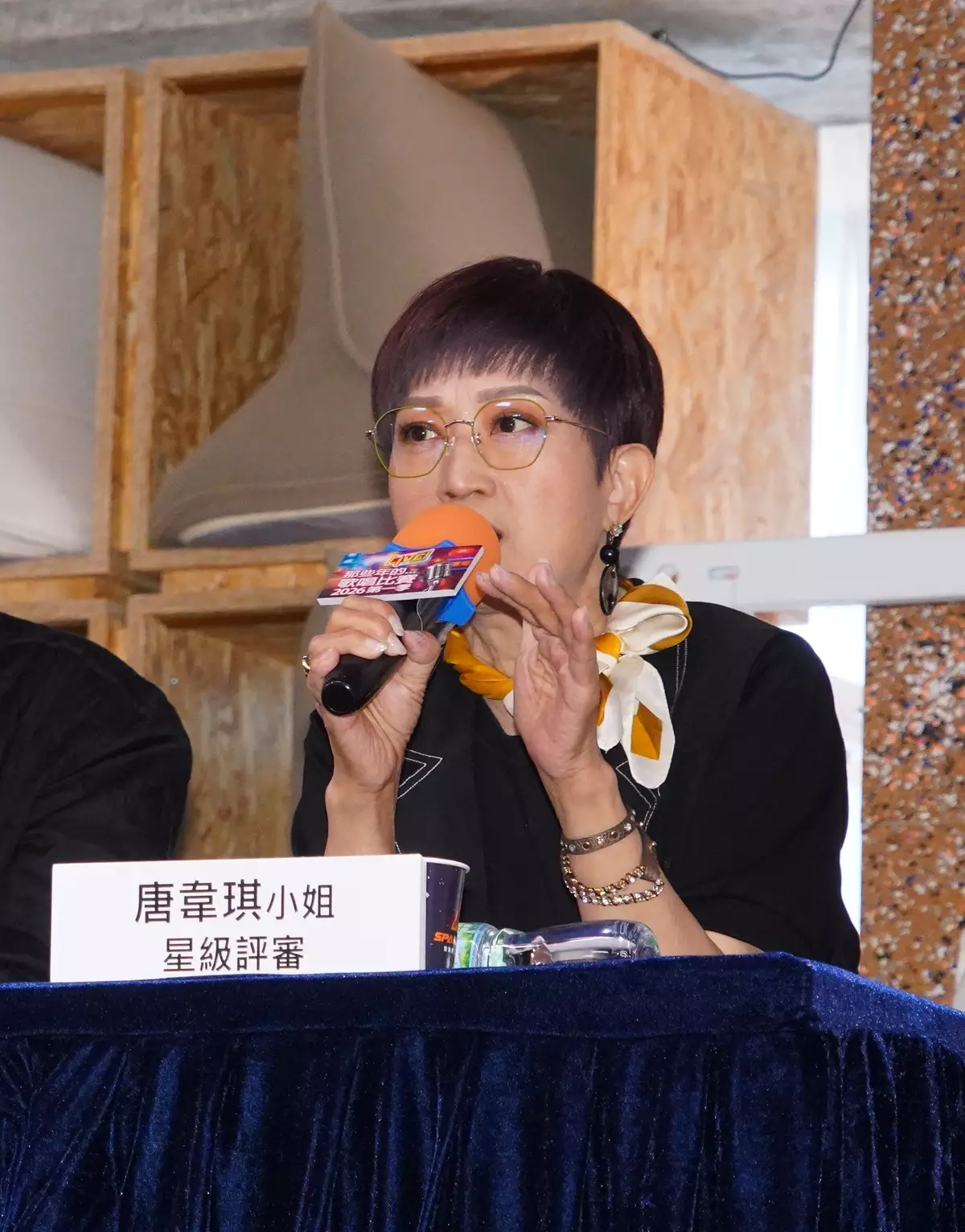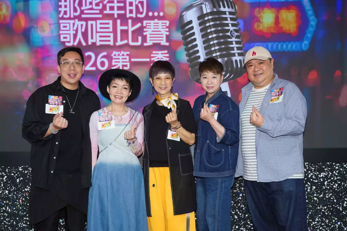 評判團與主持合照(左起)馬永齡、程凱欣、唐韋琪、朱靜宜、主持麥卓華