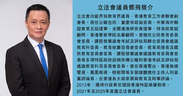 作者:鄧飛,立法會選舉委員會界別議員,香港教育工作者聯會副會長