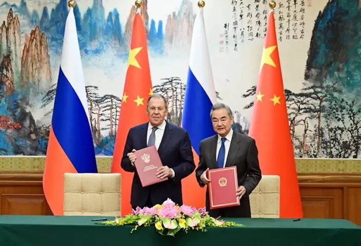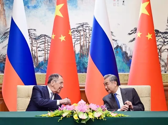 拉夫羅夫則表示,俄中是彼此尊重、高度互信的全面戰略協作夥伴。俄方願同中方共同落實好兩國元首共識,持續密切高層交往,深化務實合作,實現互利共贏。當前國際形勢面臨嚴峻挑戰,一些國家企圖拼湊遏制俄中的各種「小圈子」,雙方要對接好習近平主席提出的係列全球倡議和普京總統提出的「大歐亞夥伴關係」「歐亞大陸安全架構」等設想,在多邊舞台和國際地區事務中保持協調配合,捍衛各自國家利益,共同維護國際體係安全穩定。