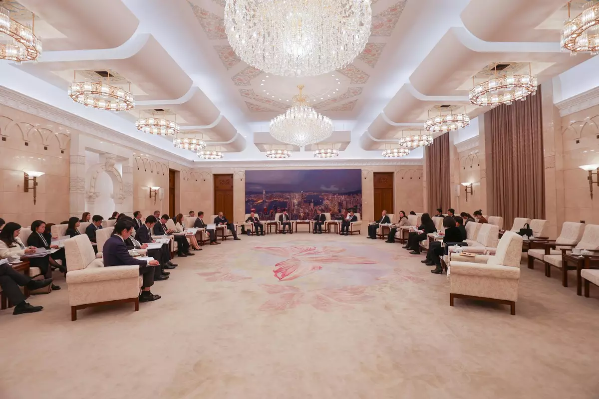 代表團由會長湯文龍率領,星期一下午獲全國人大常委會基本法委員會主任沈春耀及副主任雷建斌接見。雙方圍繞國家安全、普通法制度實踐、涉外法治建設,以及法律專業在新發展階段的角色與責任等重要議題交換意見。