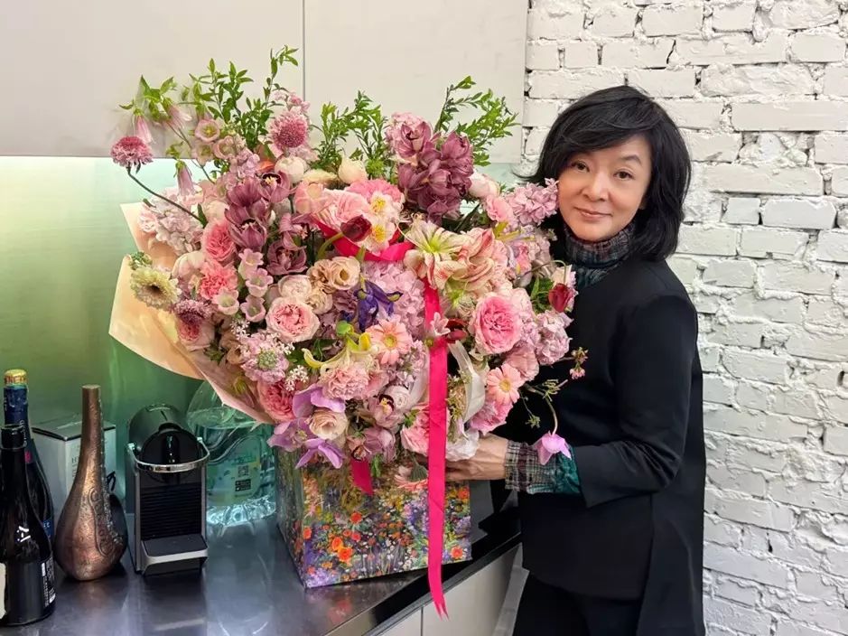 相中見佢手捧一大束鮮花,身穿黑色外套配格紋內搭,加上一頭清爽短髮,整體造型簡約又有氣質。近照看到她面色紅潤,仲帶住溫柔笑容,狀態相當不俗,完美演繹「優雅地老去」。