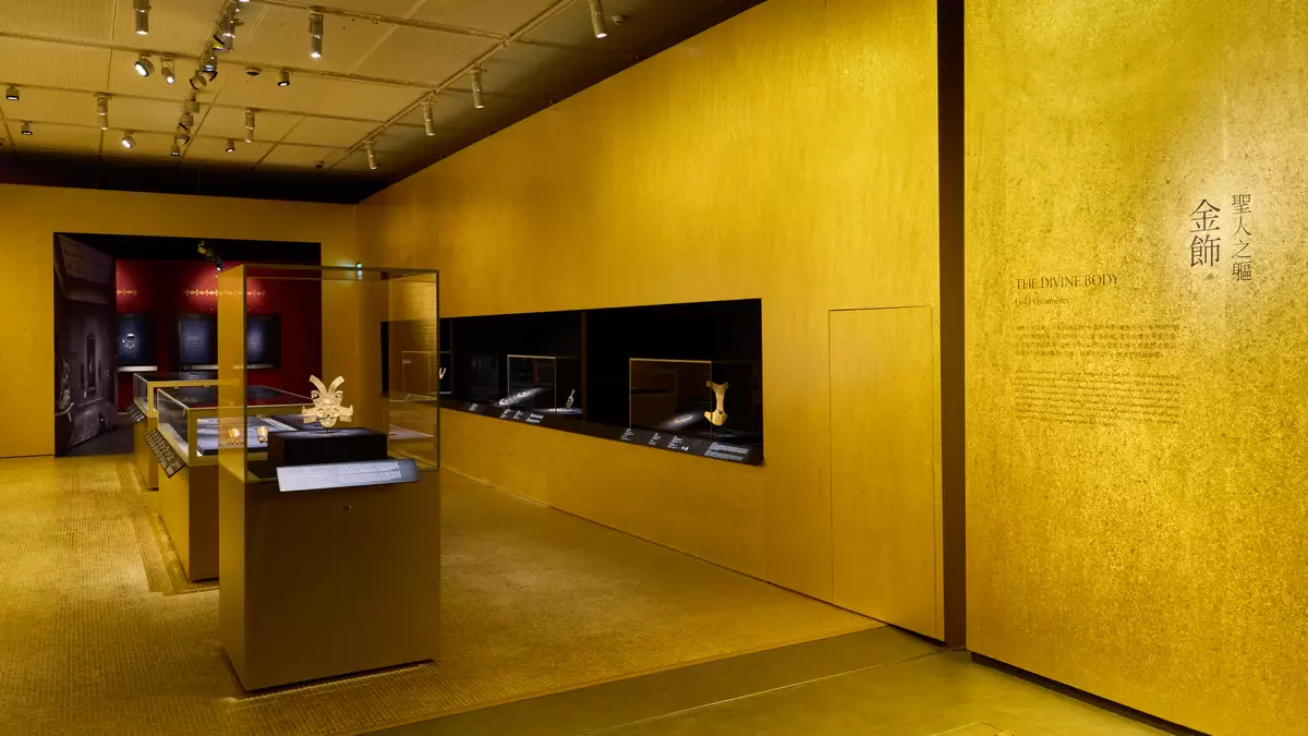 第一單元「金飾——聖人之軀」探索埃及、美洲與中國的古文明如何藉珠寶體現神聖力量。在本單元,香港故宮文化博物館夢蝶軒收藏的動物紋冠(約公元前4至公元前3世紀)與源自南美洲哥倫比亞的頭飾(1至7世紀),突出黃金在不同文化中的角色。