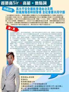 高SIR:安全是繁榮的基石,穩定是發展的前提。在第11個全民國家安全教育日之際,夏寶龍主任的致辭為香港指明了清晰的方向:高水平安全護航香港由治及興。這不僅是對過去幾年香港從亂到治轉折點的深刻總結,更是對未來五年「十五五」規劃新征程的鄭重期許,夏主任明確表示,希望港府履行好「當家人」職責,編制好這個規劃。李家超特首更斬釘截鐵地承諾,這份規劃將於今年內完成制定,並形容香港未來的任務是「責任大、任務重」。國家「十五五」規劃已為香港定調——「十個中心、兩個樞紐、一個生態圈、一個都會區、一個高地」。夏主任在講話中特別點出了北部都會區、國際金融中心地位提升、高端航運服務以及高等教育樞紐。這些具體的項目,就是香港首個五年規劃的「骨架」。這意味著,特區政府不能再只是「救火隊」或「守夜人」,而必須是引領經濟轉型的「領航員」。香港今日的良好局面殊為不易,是構築起國家安全「四梁八柱」後才換來的安定。然而,我們必須清醒地認識到,安全是一個動態發展的過程,一時的安全不等於永遠的安全,我們必須對風險隱患時刻警惕。當前,香港正處於由治及興的新階段,但潛藏的逆流依然不容忽視。反中亂港分子仍伺機反撲,外部勢力「以港遏華」的圖謀從未改變,地緣政治與網絡安全的風險交織重疊。要應對這些挑戰,單靠政府的力量遠遠不夠,維護國家安全是全體香港市民的共同責任,全社會要共同守護我們的家園。無論是工商界、教育界還是廣大青年,都應主動對接國家戰略,在各自的崗位上築牢屏障,匯聚成維護穩定、共謀發展的強大合力。高SIR認為,在資訊傳播多元化的今天,構建安全防線還需要創新的思維與手段。社交媒體已成為意識形態博弈的主陣地,在凝聚共識、抵禦抹黑方面,正能量網紅可發揮方方面面作用。這些擁有影響力的輿論引導者,能以更接地氣、更具感染力的方式,向世界講好香港故事,堅決回擊外部勢力的唱衰言論。他們不僅能宣傳國家安全的重要性,更能引導廣大青年正確認識國家發展,激發愛國愛港情懷。「安全港」就是「發展港」。只有守住安全底線,香港才能在「十五五」時期搶抓戰略機遇,發揮國際金融、航運、貿易中心的傳統優勢,並以科技創新引領新質生產力。我堅信有祖國作為堅強後盾,社會各界「心往一處想,勁往一處使」,香港的高質量發展必將欣欣向榮。讓我們齊心協力,以高水平安全保障高質量發展,讓東方之珠在祖國的堅強後盾下,綻放出更加耀眼的光芒。期望青年把握「十五五」時期的重大機遇,積極參與北部都會區的建設熱潮,逐夢打拼,綻放青春光彩。