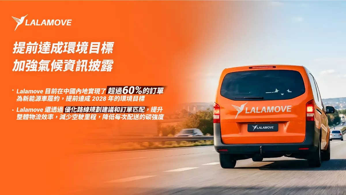 即時送貨平台 Lalamove 發佈《可持續發展報告 2025》,詳細展示公司在環境保護、資訊安全、司機安全及社區貢獻等方面的最新進展。報告顯示,Lalamove 在中國內地的新新能源車訂單履約率已突破 60%,其中麵包車的新能源車履約率更高達 67%,提前達成原定於 2028 年的環境目標。與此同時,公司成功取得 ISO 27701 私隱資訊管理系統認證,並在全球各市場連續第四年維持 99.9% 零受傷營運率,持續為司機夥伴和社區提供支援。