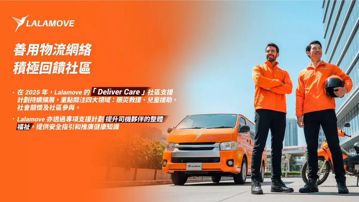 除社區計劃外,Lalamove 亦透過專項支援計劃提升司機夥伴的整體福祉,提供安全指引和推廣健康知識,助力他們在業務內外皆能穩健前行。「Deliver Care」計劃覆蓋亞洲及拉丁美洲多個市場,充分展現 Lalamove 在平台業務外創造更多正面影響。