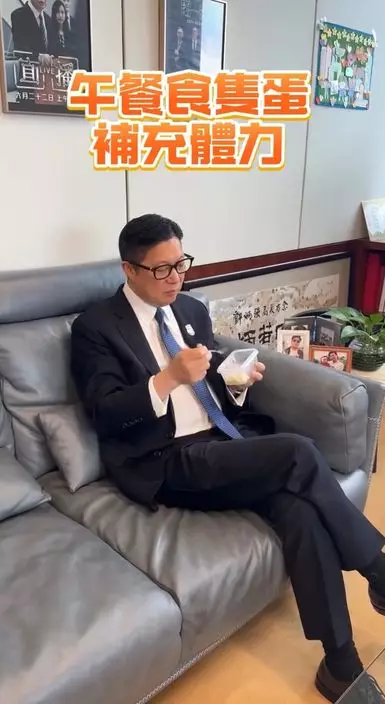 保安局局長鄧炳強4.15「全民國家安全教育日」行程緊密,中午吃隻蛋補充體力。鄧炳強ig短片截圖