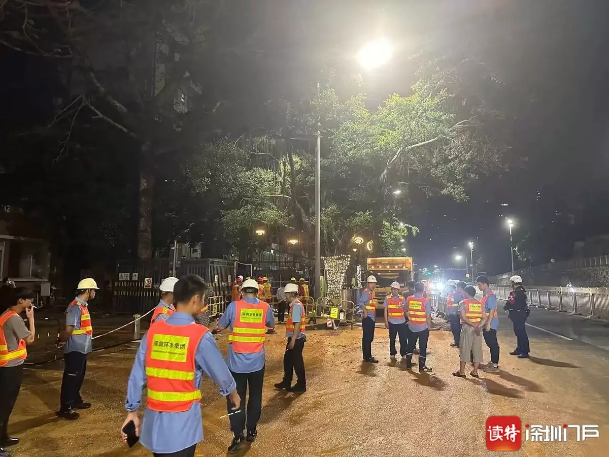 據內媒南都N視訊報道,凌晨2時30分許在現場發現,水管爆裂位置受水流衝擊,已形成一處面積達數平方米的大坑,當時水流已停止湧出。深圳水務集團工作人員表示,他們在凌晨0時05分接到報告後已趕往現場。目前,搶修人員已關停供水閥、切斷水源,並同步調配抽水設備開展排澇作業,清理路面積水與被衝散的雜物,同時排查管道破損情況。