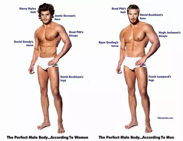 英國女性內衣零售商Bluebella最近做了一項調查,要求1000名男女人挑選自己最喜歡的身體特點。對於完美女人,女性喜歡苗條、修長的身型,而男人喜歡豐滿的凹凸有致曲線;但對於何謂完美男人,男女的看法似乎較一致。