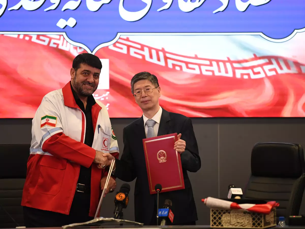 中國向伊朗提供緊急人道主義援助,相關項目政府間交接證書簽字儀式於星期三在德黑蘭的伊朗紅新月會總部舉行。中國駐伊朗大使叢培武與伊朗紅新月會主席科利萬德出席儀式。