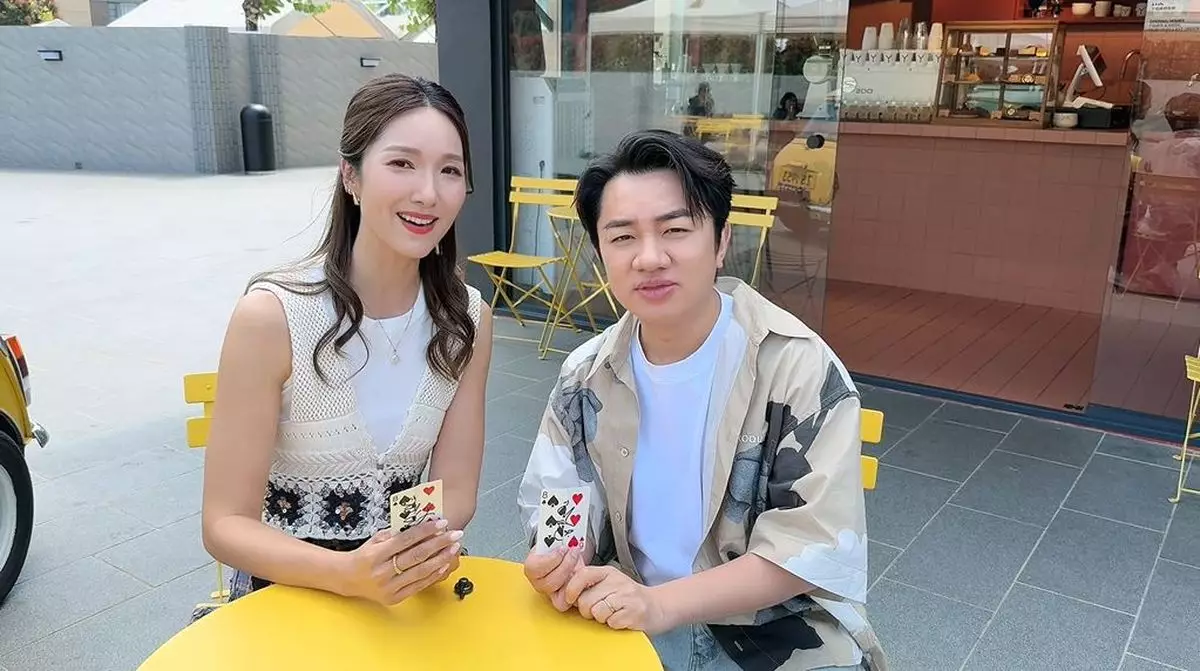 王祖藍與李亞男拍片祝賀。