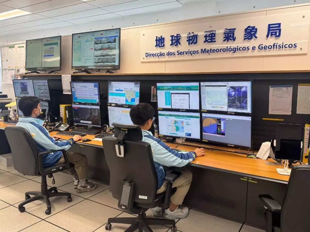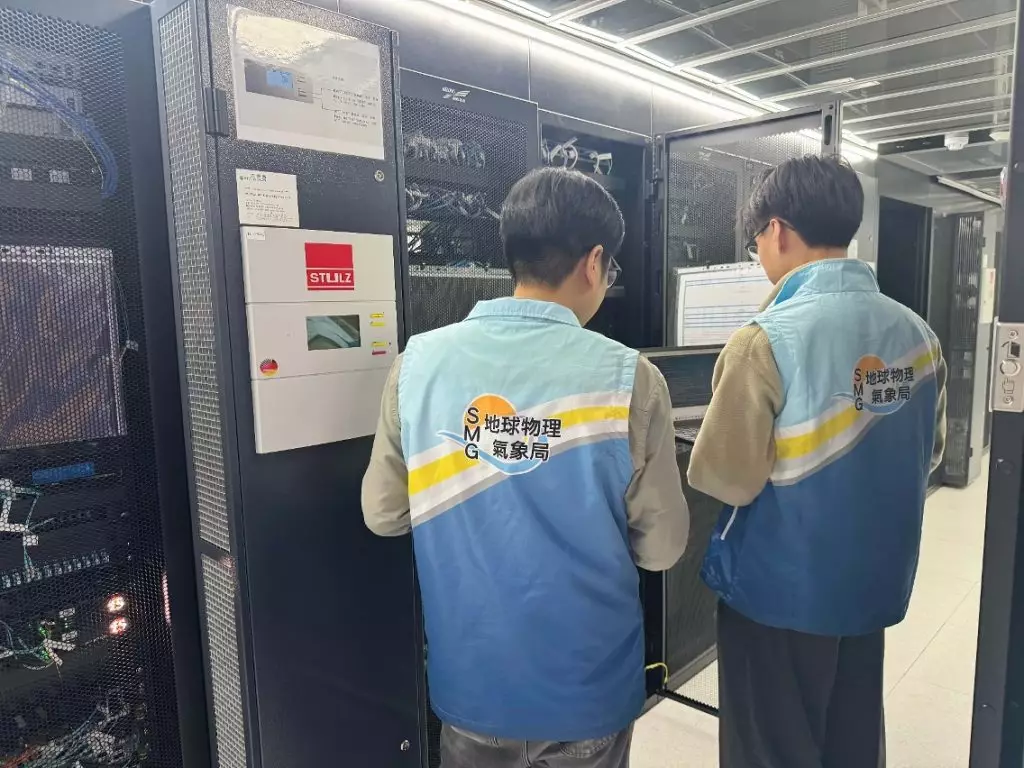 氣象局人員檢查系統設備。澳門政府新聞局圖片