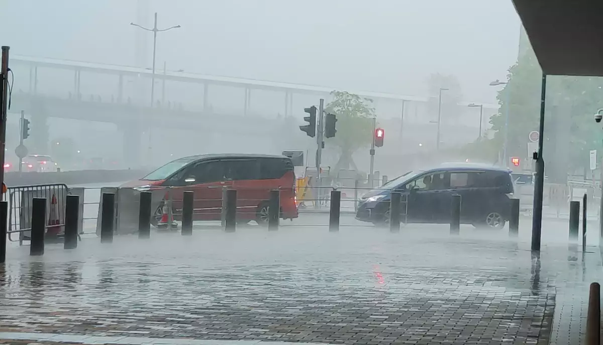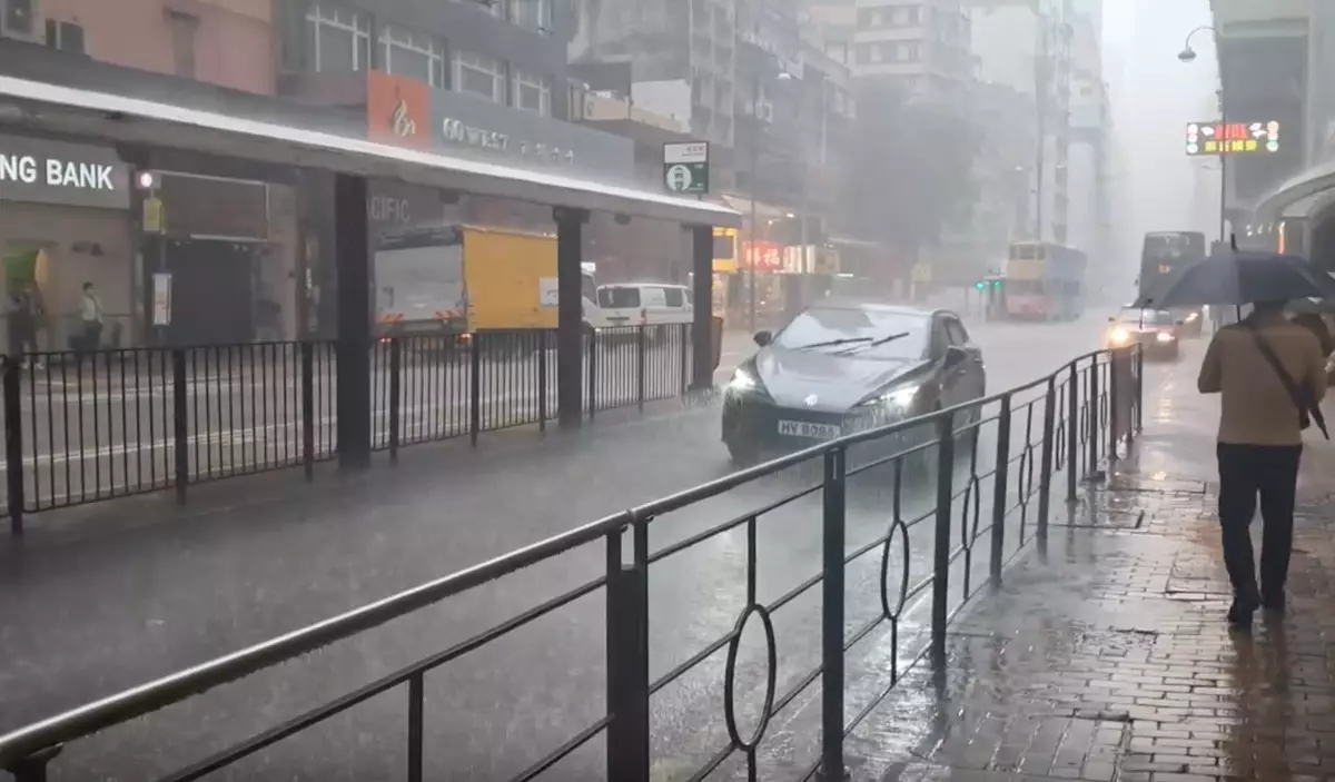 本港多地雨勢頗大,其中迪士尼樂園暴雨如注,香港仔落雨時不時雷聲大作,大角咀行車劃破雨幕,香港理工大學附近雨勢亦相當洶湧。