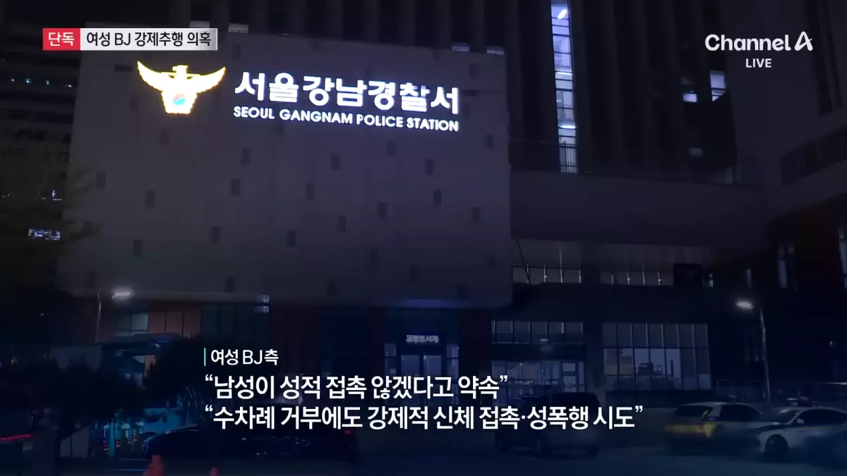 首爾江南警察署於4月15日晚間接獲一名女性直播主報案後,迅速出動將一名30多歲金姓男子逮捕,罪嫌為強制猥褻。ChannelA影片截圖
