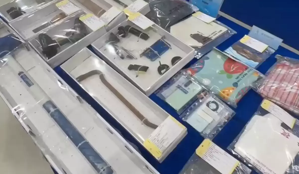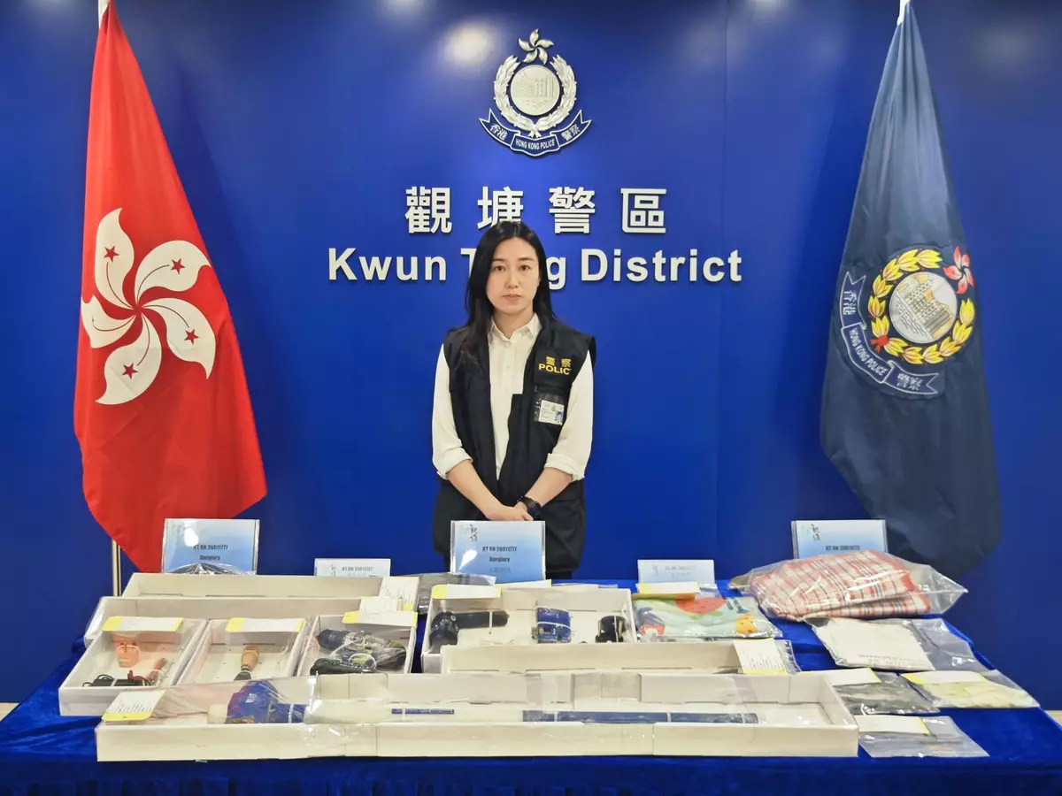 警方觀塘警區重案組第一隊督察黃凱瑩展示證物。