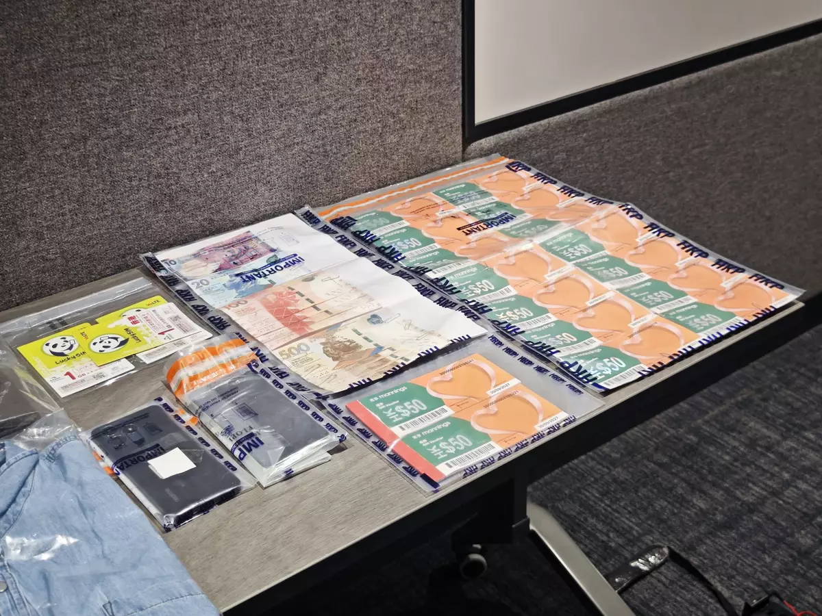 警方於 4月16日採取行動,拘捕兩名本地男女主謀及一名外籍家庭傭工(傀儡戶口持有人)。據警方估計,該集團運作期間,每月平均犯罪得益高達11萬港元。行動中檢獲4部智能電話、21張電話卡、1張記憶卡及54張現金券。所有被捕人士現正被扣留調查,行動仍在進行中,不排除有更多人被捕。