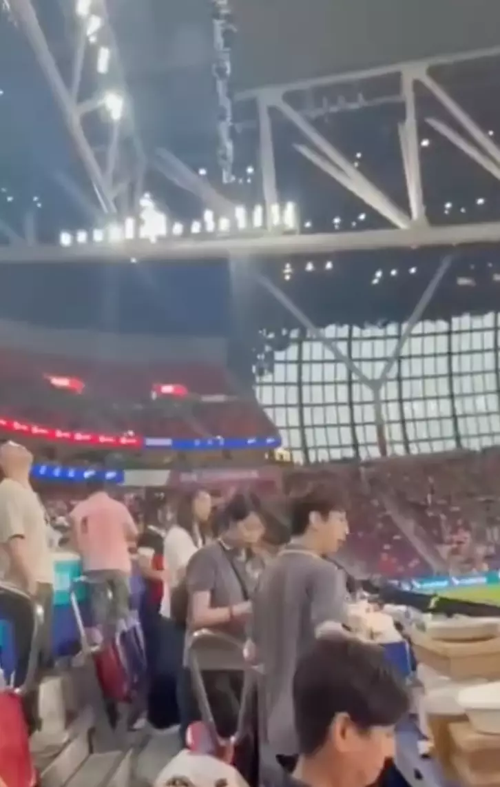 啟德主場館天幕,應天氣關上,但至4時許天幕出漏水,雨水一直由天幕流下,天幕因有明顯罅隙,雨水不斷滴下。有觀眾表示,早在下雨前天幕已有少許漏水情況出現,被漏水弄至半濕,表示周六再觀戰時帶備雨衣。