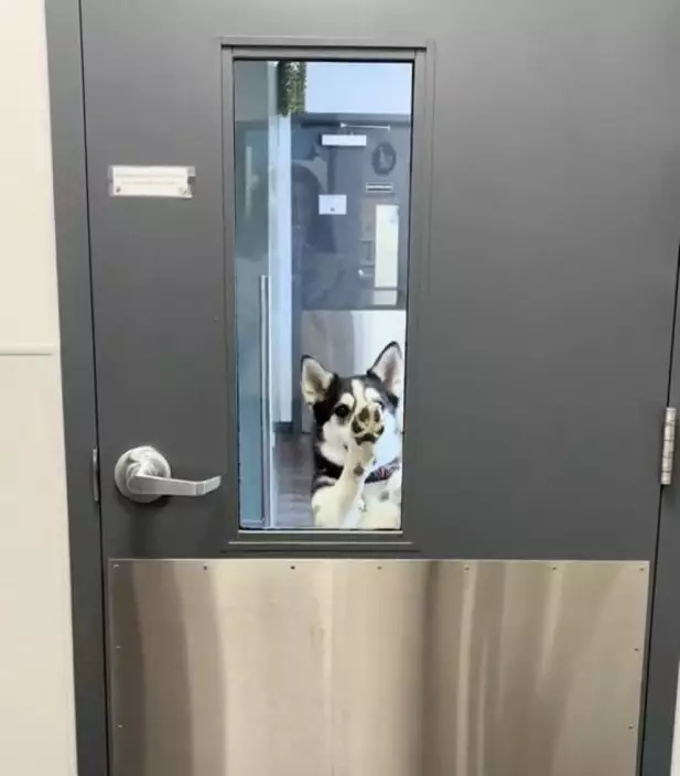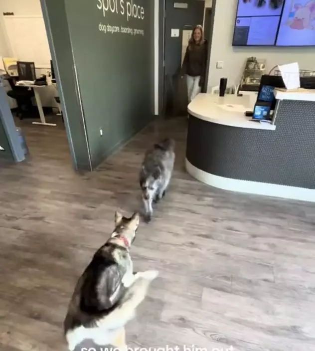 5歲哈士奇犬原定由主人帶往獸醫診所,卻自行「離家出走」前往寵物日托中心。TikTok圖片