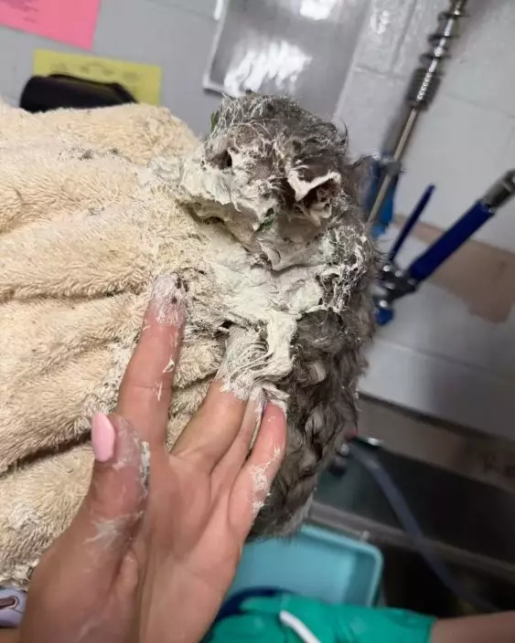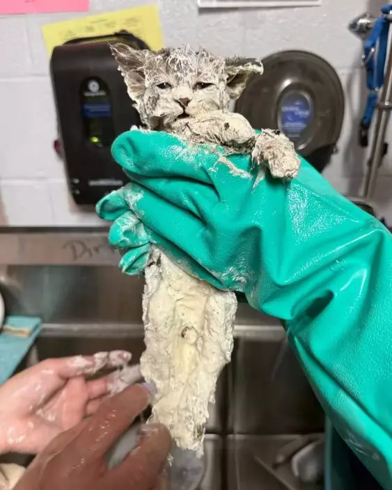 早前,美國德州動物救援組織Humane Society of North Texas接獲通報,指一隻約6周大的小貓埃爾默(Elmer)意外跌入工廠內裝滿工業用黏著劑的大桶中。雖然獲途人發現並成功救出,但因全身被厚重膠水覆蓋無法進食、飲水及自行清潔毛髮。救援人員到場後發現,小貓全身包括耳朵、眼睛及口鼻均被厚膠覆蓋,且出現嚴重脫水症狀,須即時接受醫療處理。