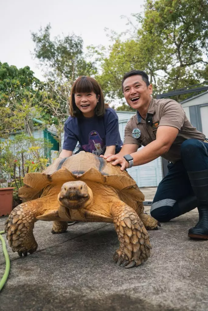 小儀笑言過往接觸貓狗較多,未真正接觸龜隻前,一直抱持「遠觀」態度,以為養龜毋須投放太多心力,甚至誤以為牠們可以自生自滅。她憶述兒時曾聽聞朋友家中的龜躲進電視櫃多年後仍安然無恙,笑稱:「以為佢哋食塵都生存到。」直至參觀「龜途」,她才驚覺養龜其實相當講究——每餐需遵循高纖維、低水分、低蛋白的飲食原則,並需添加營養補充劑,還要細心準備食物,照顧方式與貓狗無異。她更親身體驗為龜龜刷背,「原來龜龜畀人刷背時真係會左右擺動、扭Pat Pat,非常得意!」小儀表示,這次難得的親身接觸讓她對龜隻有更深刻的認識,也令她在演繹角色時,更能投入對「家傳之龜」的真摯情感。