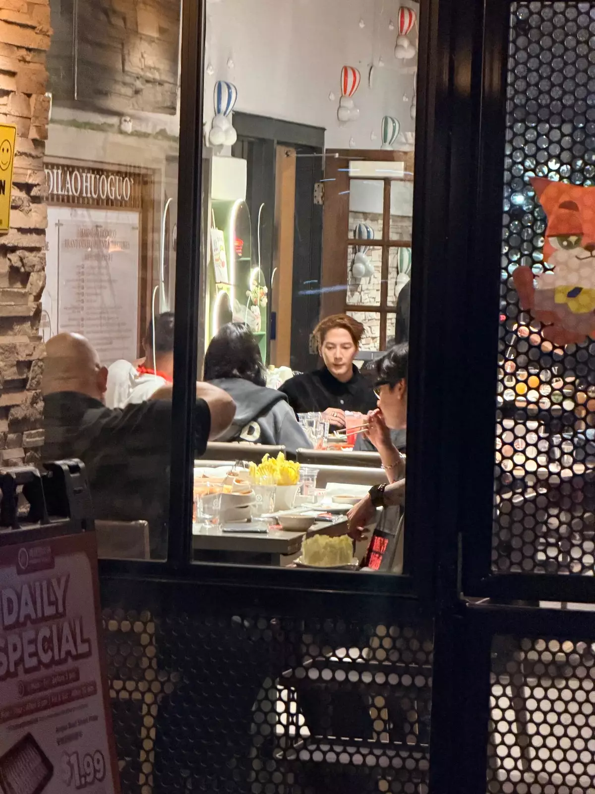 近日就有網民在社交平台分享,偶遇王嘉爾在內地一家平民火鍋店用餐的畫面。王嘉爾身穿簡單的黑色上衣,打扮相當低調,但出眾樣貌與氣質仍被食客一眼認出。令人意外的是,他與友人並未選擇私密性較高的包廂,而是被安排坐在店內靠近路口的普通座位,背後不時有服務員穿梭走動。