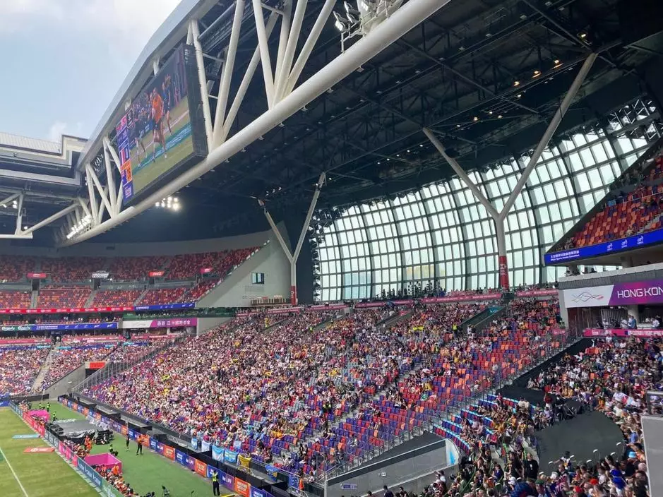香港國際七人欖球賽今天(19日)來到最後一日賽事,中午過後,入場觀賽的觀眾數量明顯增加,現場氣氛熱烈。
