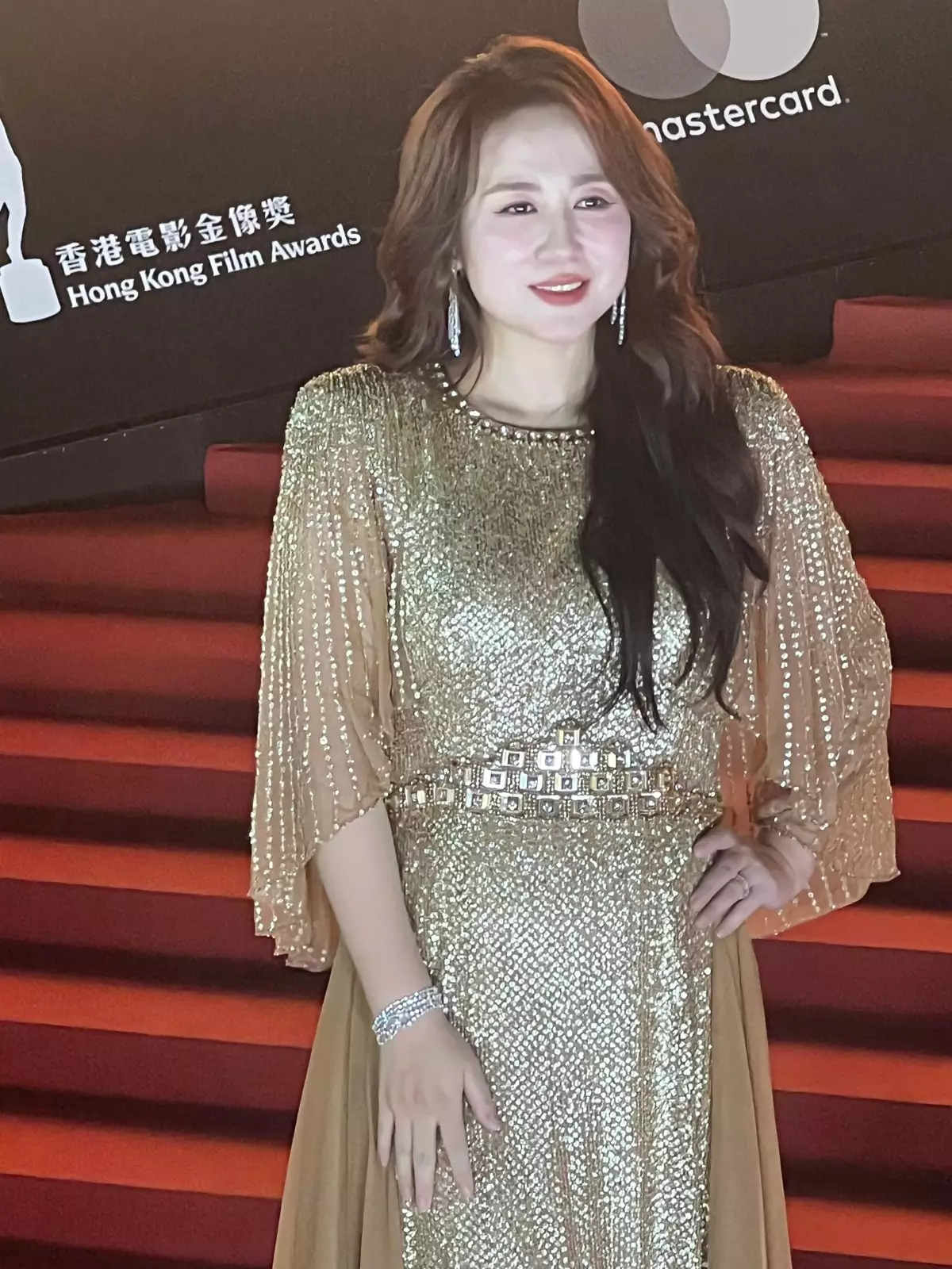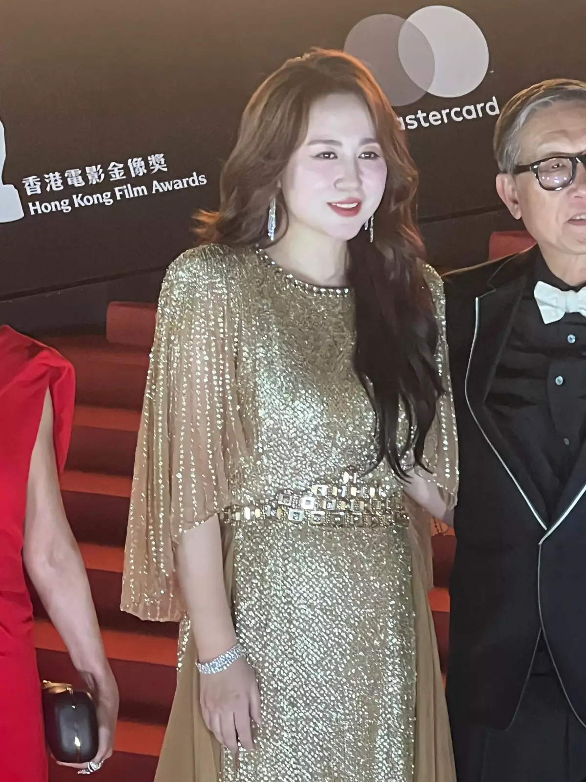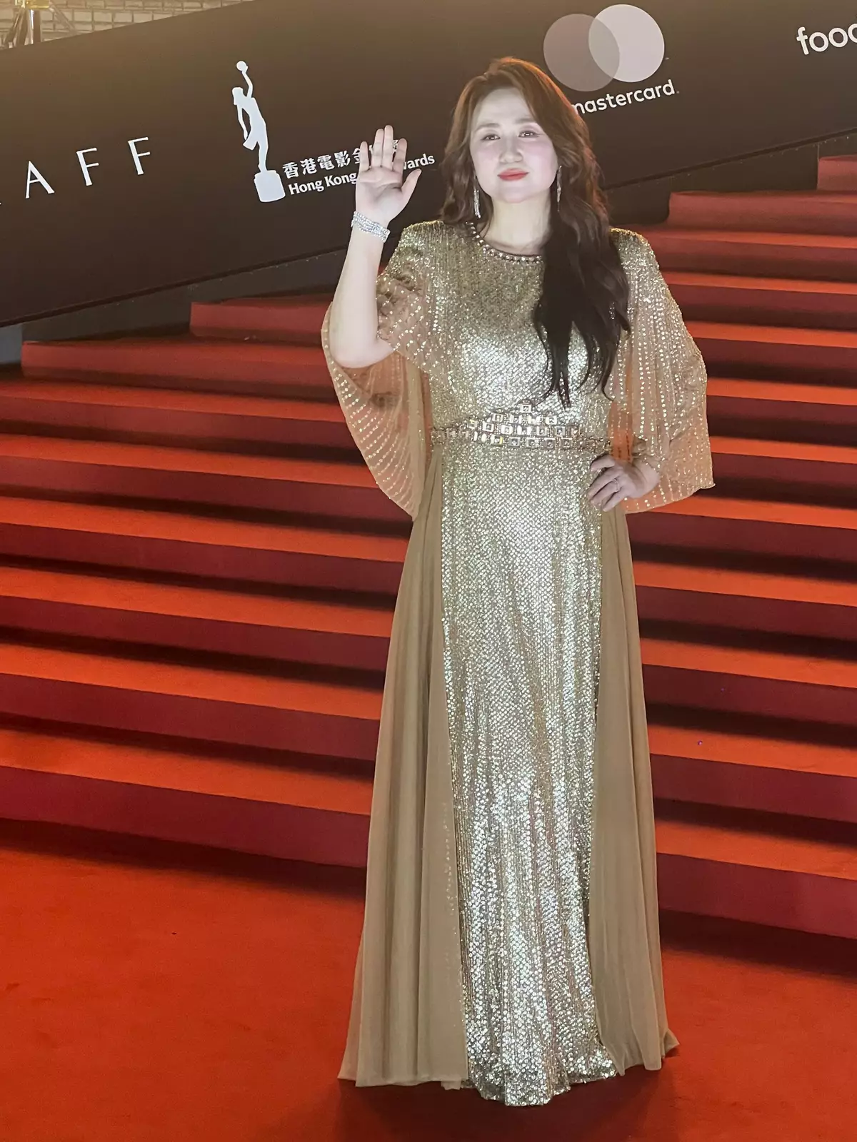 內地喜劇女王馬麗首次憑港產片《水餃皇后》角逐香港電影金像獎最佳女主角,她以一襲金光閃爍的華麗晚裝登場,高貴優雅之餘亦散發著強大氣場。