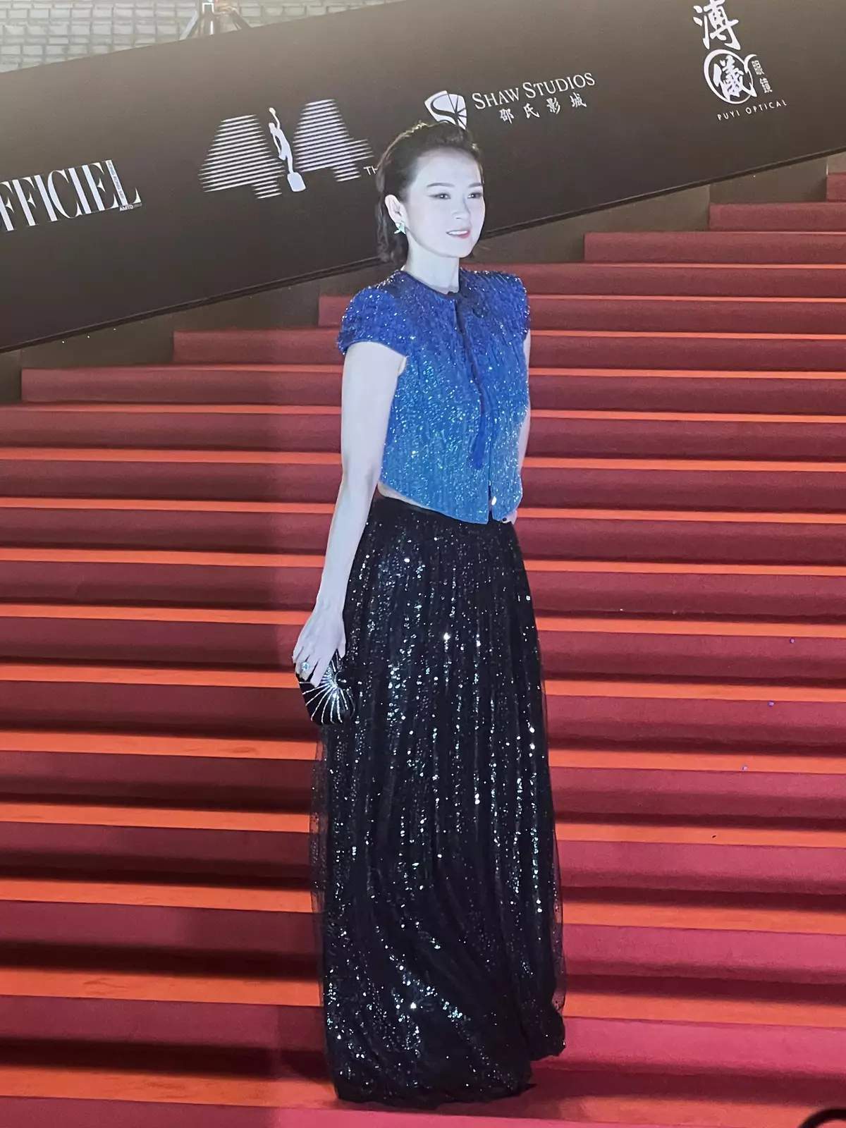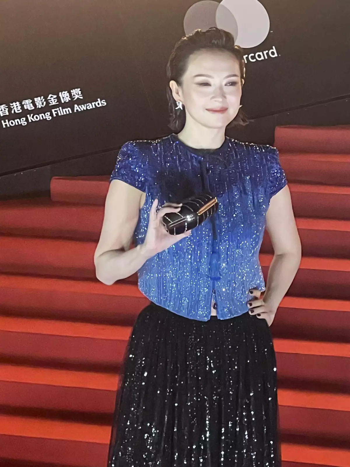 國際影后章子怡以一襲華麗的藍黑色閃片拖尾禮服踏上紅地氈,章子怡至今已兩度成為金像獎最佳女主角,先憑王家衛的《2046》成為2005年度金像影后,其後再以《一代宗師》二度封后。