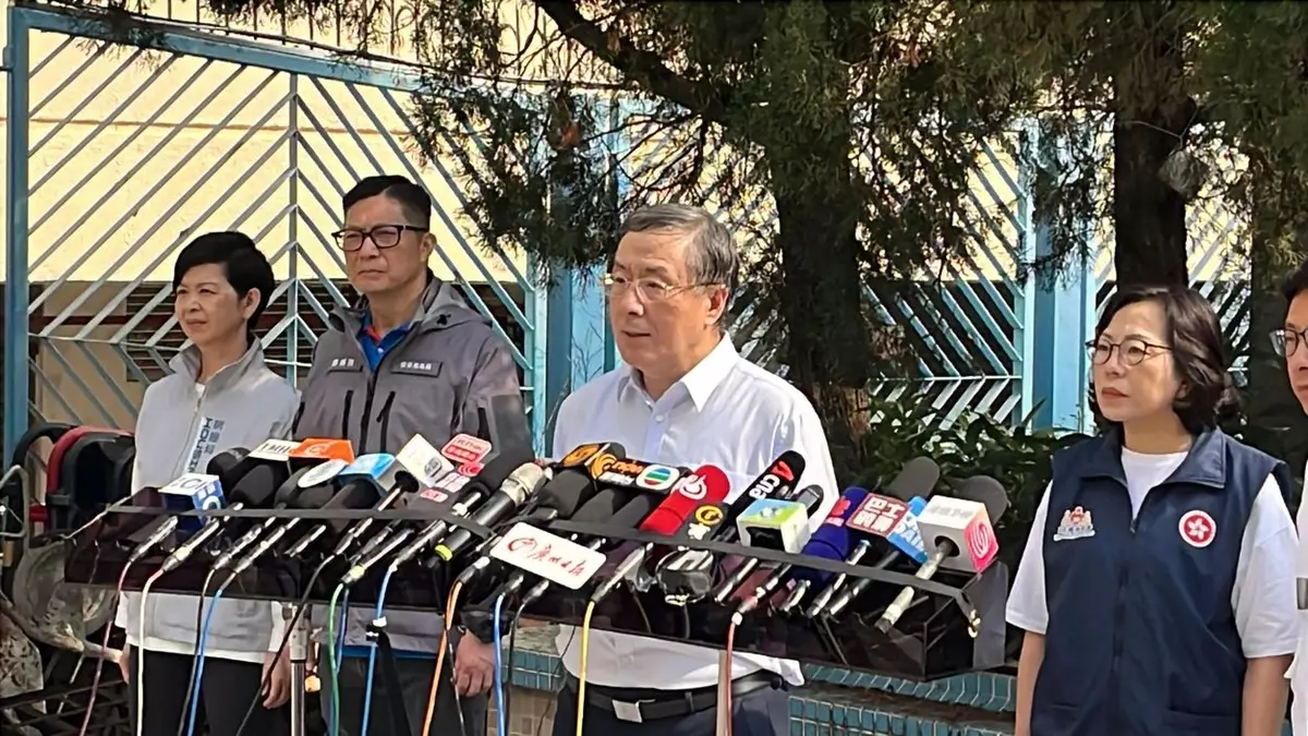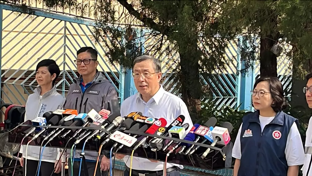 大埔宏福苑受火災影響的7幢大廈居民即日起至下月4日,分批返回單位執拾。保安局局長鄧炳強、勞工及福利局局長孫玉菡隨政務司副司長卓永興等官員到現場視察後見傳媒。