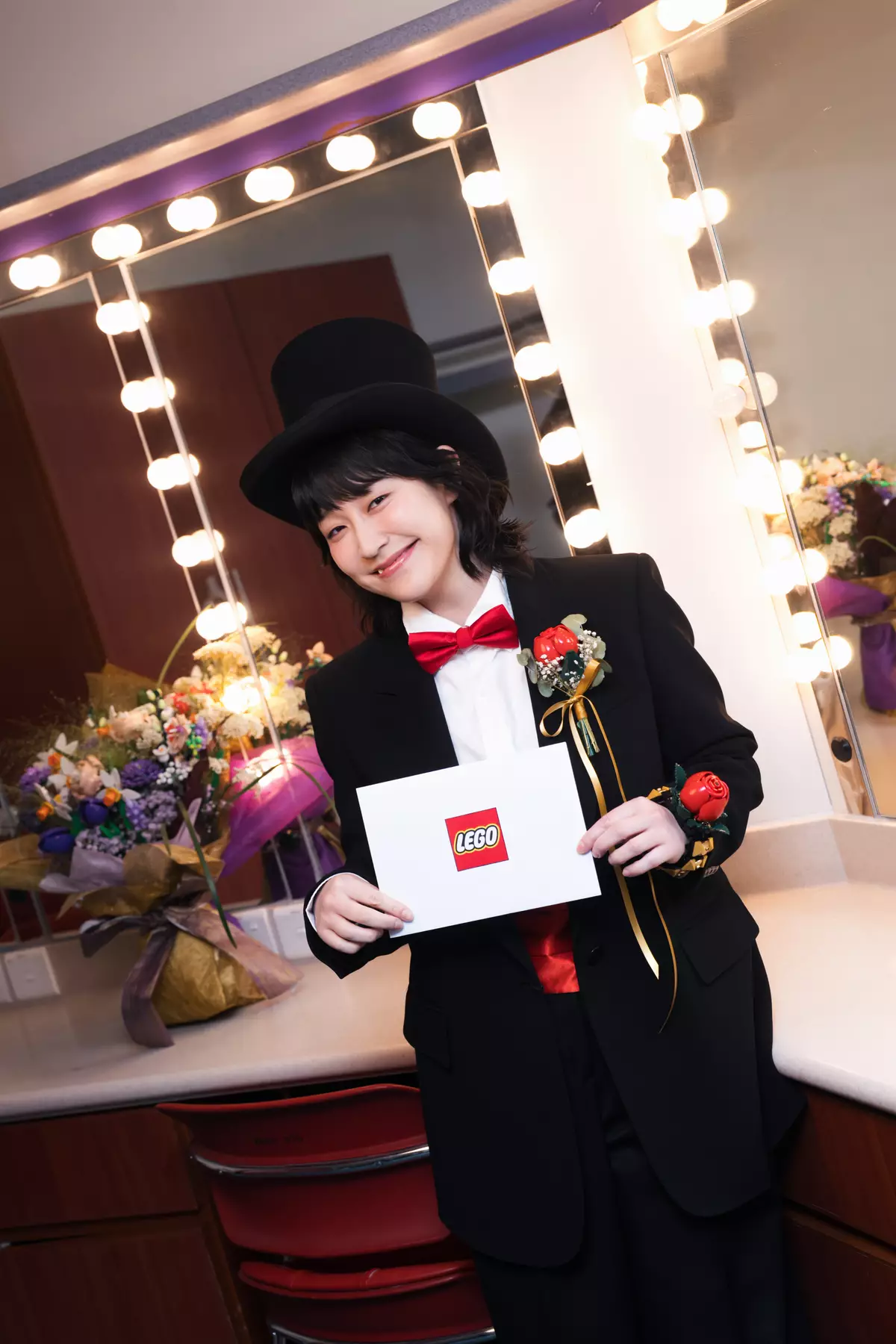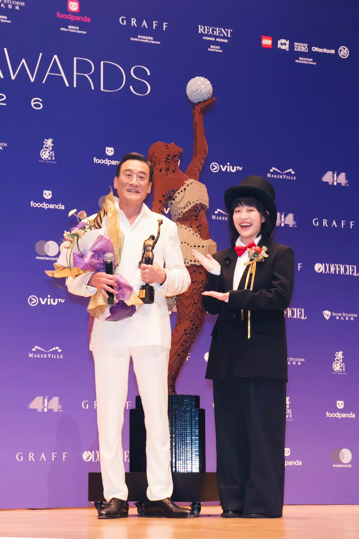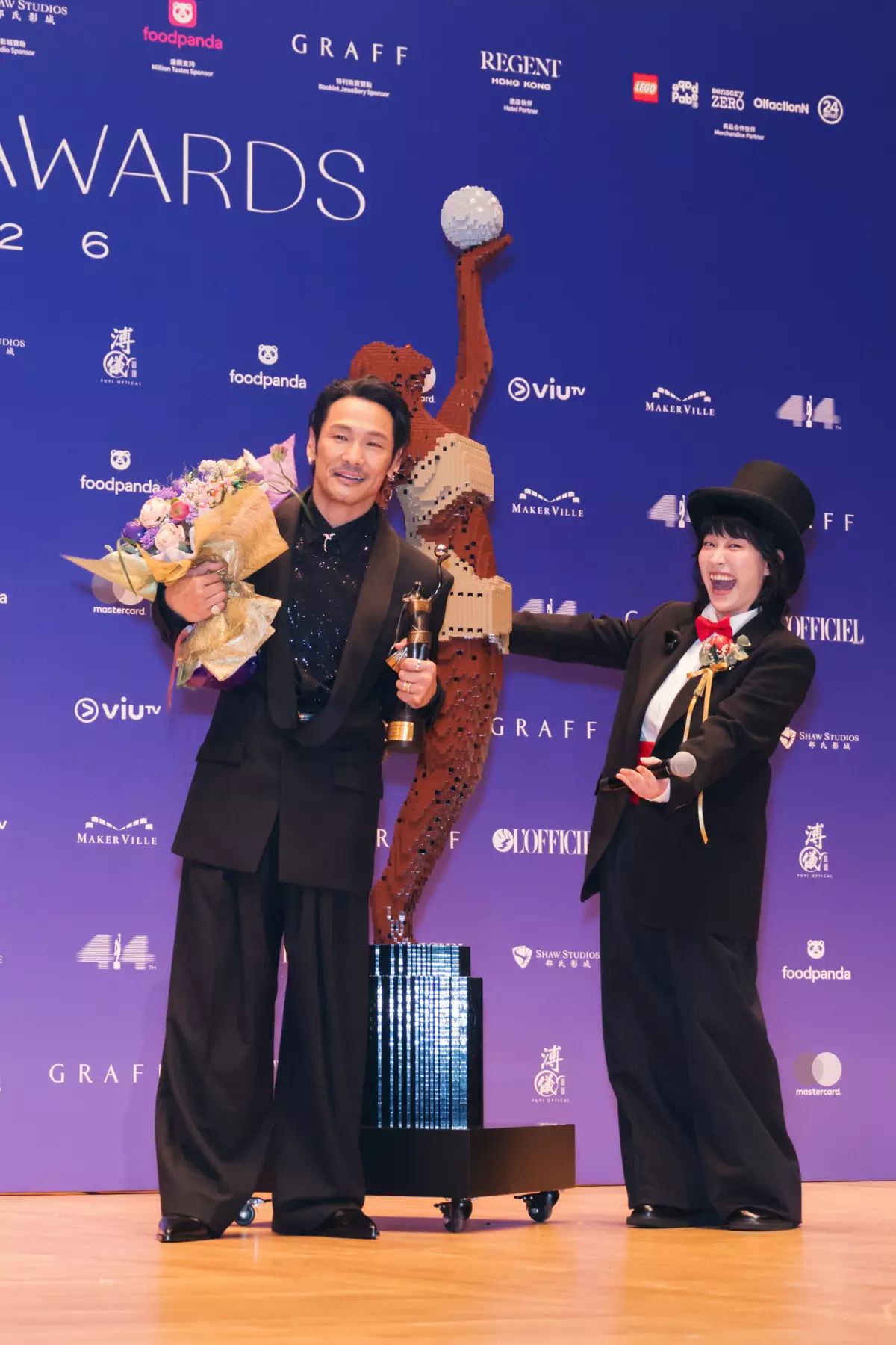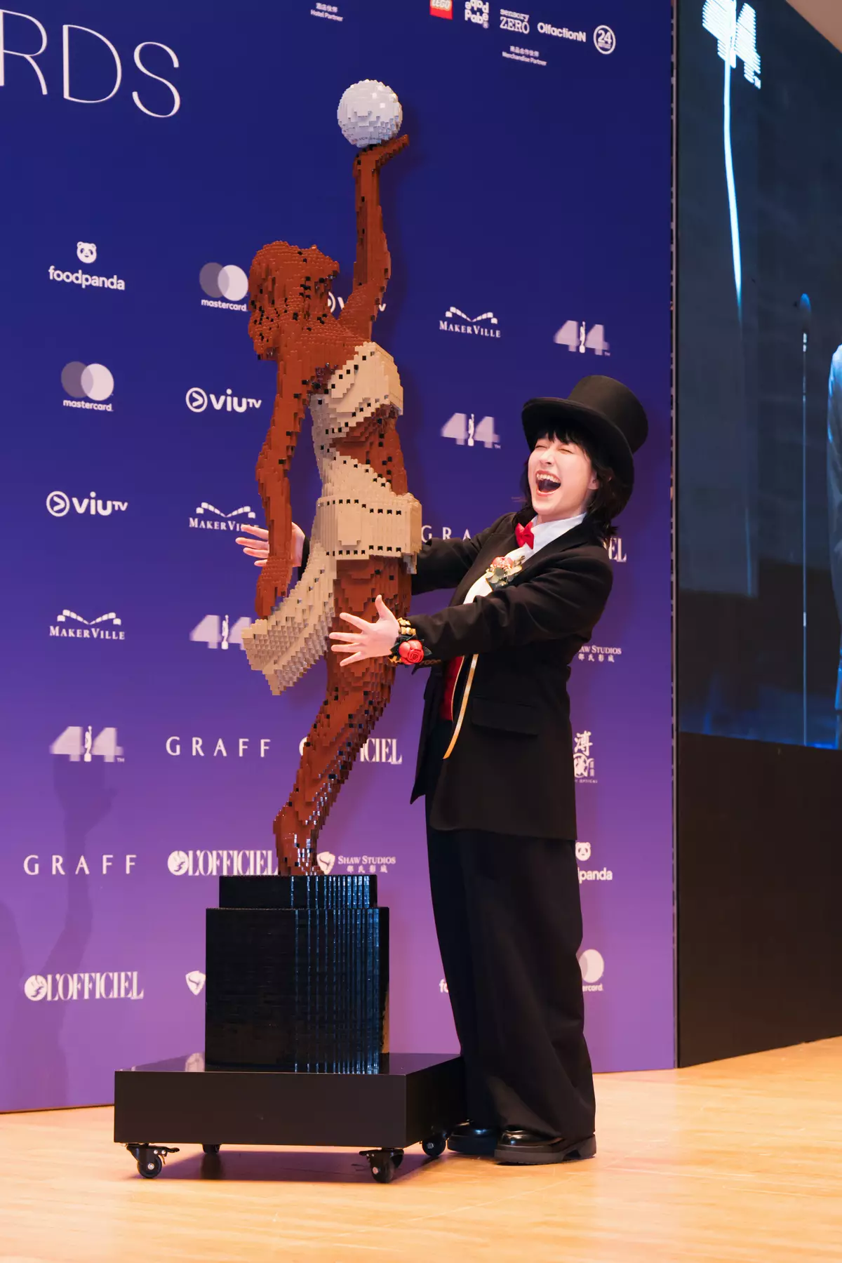 當晚阿正代表LEGO®香港,向出爐「最佳男主角」梁家輝、「最佳男配角」杜德偉與「最佳女配角」衛詩雅送上融入LEGO®元素的花束。