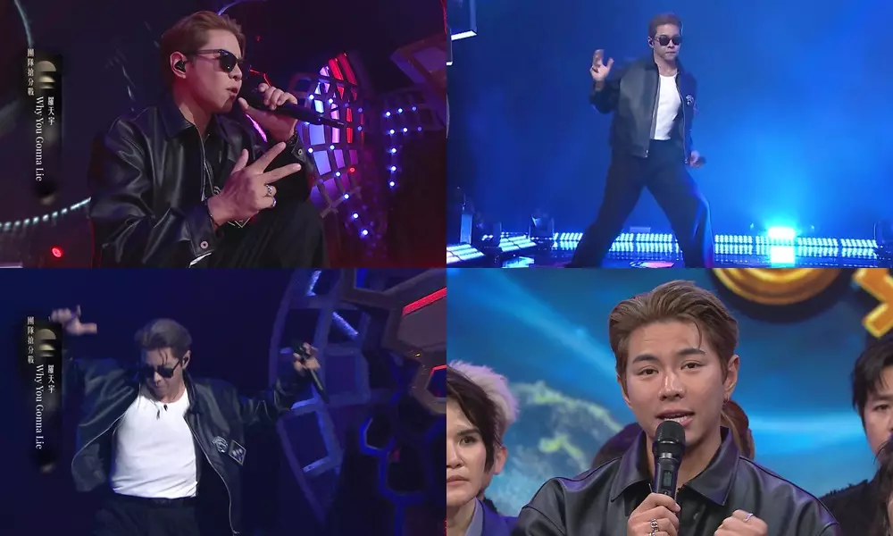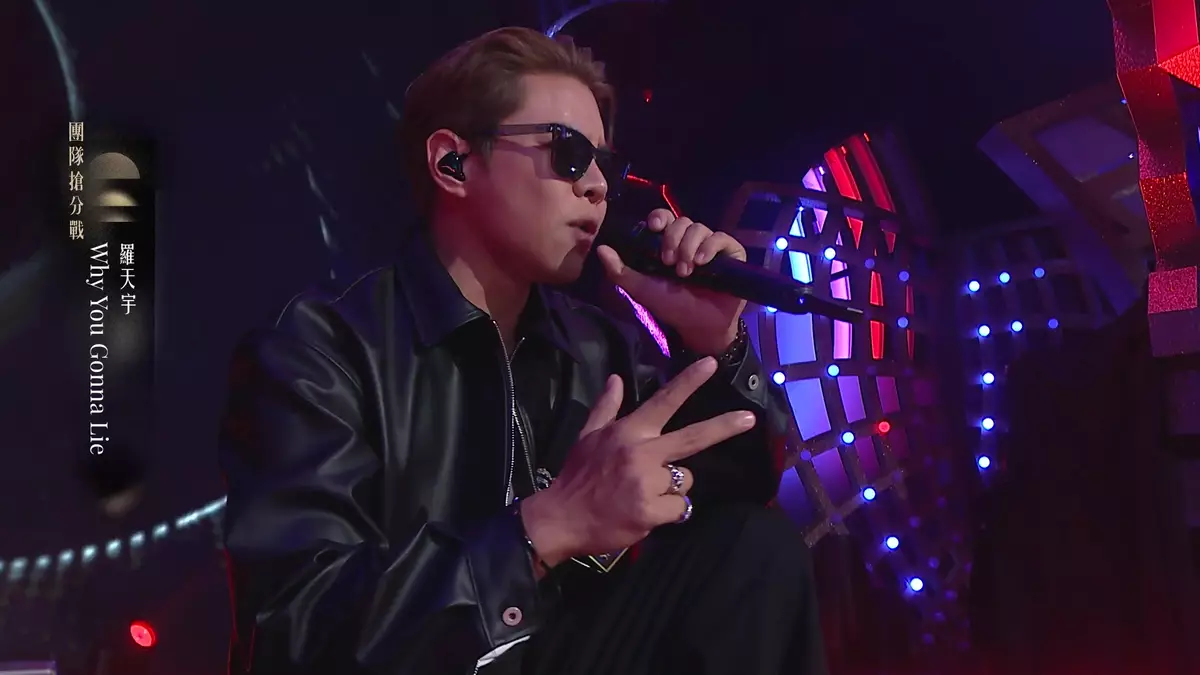 首先出場的「獅子王」羅天宇,一改之前唱抒情路線,破格戴上黑超及穿上皮褸,化身「未來戰士」單膝跪地出場,獻唱《Why You Gonna Lie》大騷Rap功,唱到尾段更大跳勁舞,引來全場喝采。專程到場支持天宇的緋聞女友陳懿德與「東張女神」鄧凱文亦睇到勁開心,陳懿德更歡呼兼拍掌。