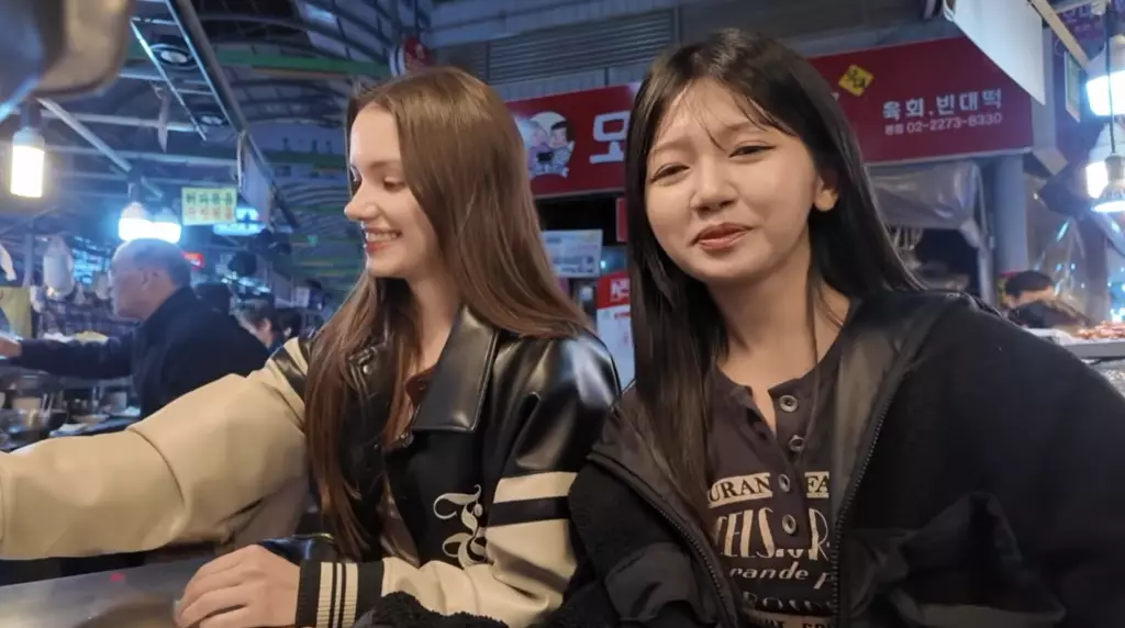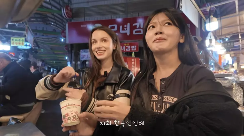 徐藝恩與友人到首爾廣藏市場用餐,竟被攤販收取一瓶水2000韓元。YouTube截圖
