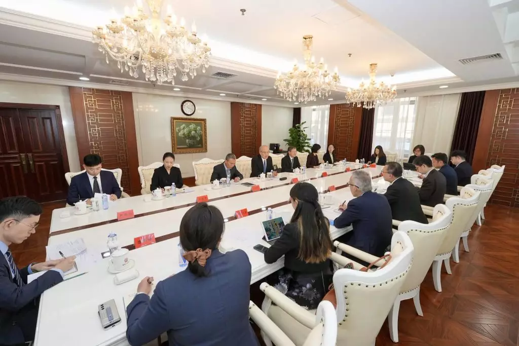 隨後,林定國與商務部國際貿易談判副代表蔣成華及其同事會面,匯報了國際統一私法協會(UNIDROIT)在港設立聯絡辦公室的進展。聯絡辦公室預計於今年十一月「香港法律周 2026」期間正式開幕。他相信,隨著聯絡辦公室的成立,將鞏固香港作為國際法律及爭議解決服務中心的地位, 促進和便利國家和亞太地區更積極主動參與國際私法的制定和實踐。他亦把握是次會面,誠邀商務部代表屆時出席開幕典禮並發表講話。