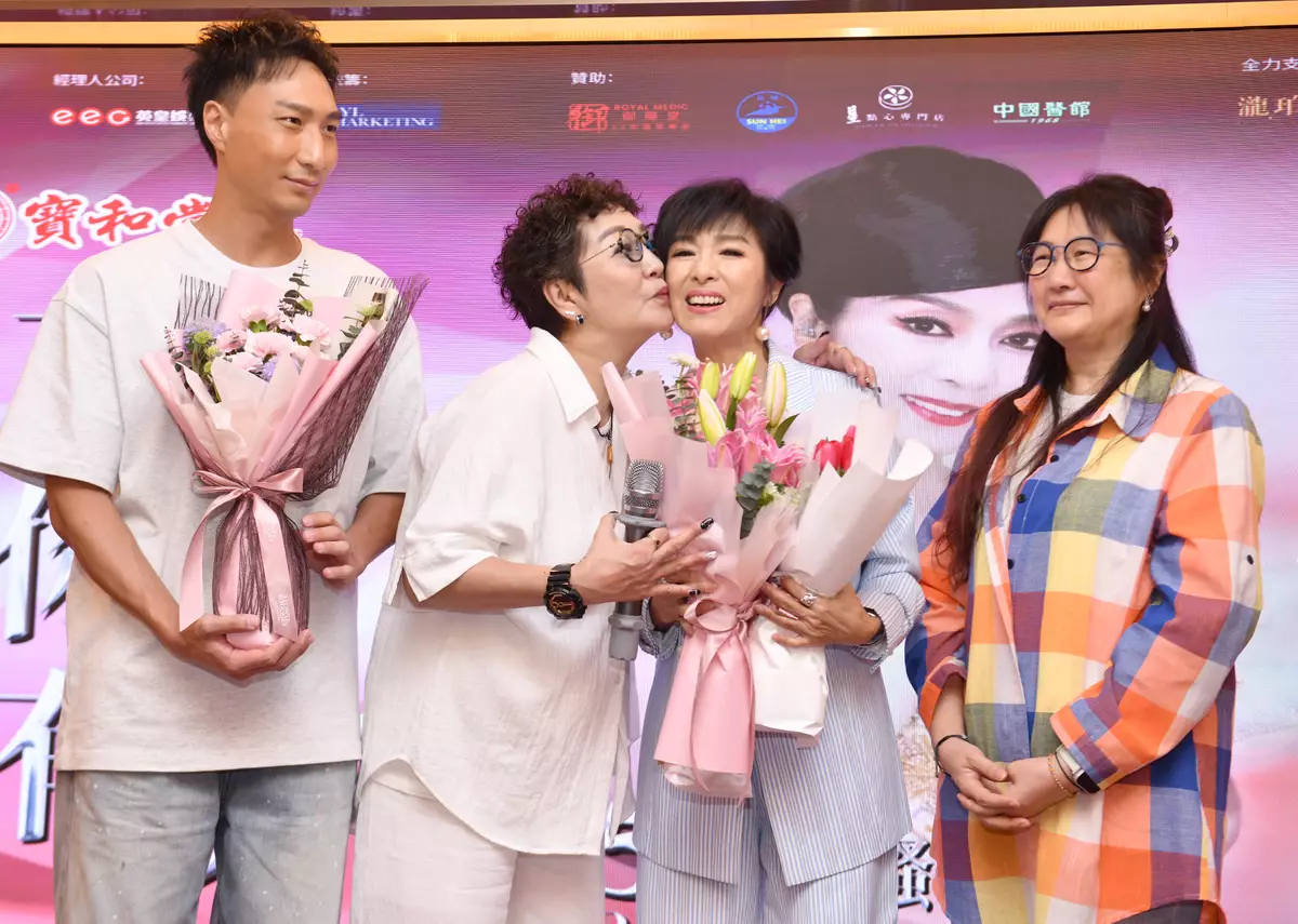 主辦單位「本地舞台」日前舉行記者會,米雪的妹妹蘋果、雪梨、姨甥徐偉棟,以及相識數十載的螢幕「閨密男友」劉緯民齊齊到場打氣。劉緯民笑言:「如果55年前好彩的話,今日已經係結婚55周年,但當年米雪唔理我。」他又自嘲是「身不由己夫」,場面搞笑。