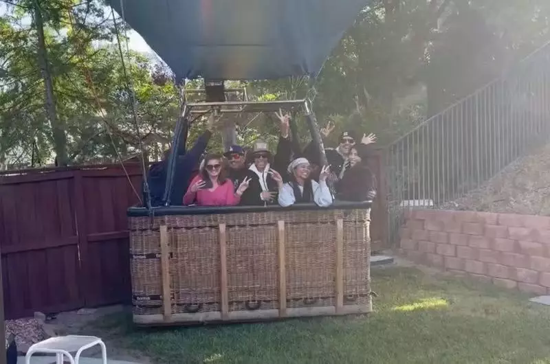 熱氣球突降自家後院,夫婦開門驚見逾10名遊客站吊籃內揮手比Yeah勁錯愕。網上圖片