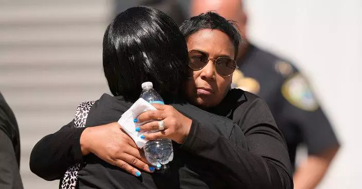 市議員泰勒(Tabatha Taylor)(右)在路易斯安那州什里夫波特(Shreveport)大規模槍擊案現場外擁抱一名身份不明人士。攝於2026年4月19日周日。(美聯社圖片/Gerald Herbert) AP圖片