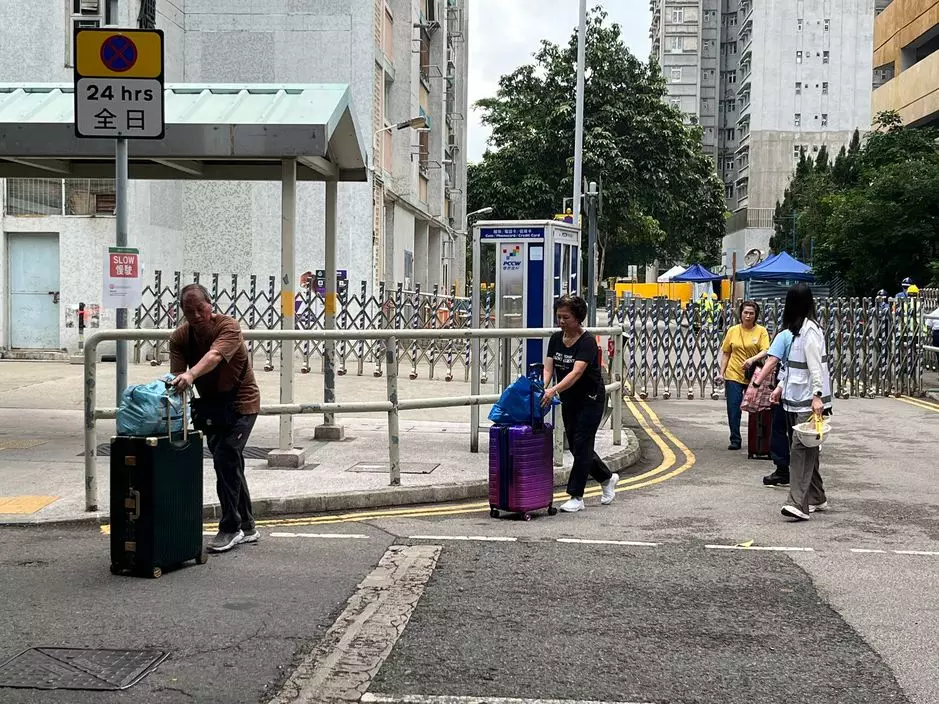 政府昨日(4月20日)開始分批安排宏福苑居民返回單位執拾物品,首批上樓的是宏新閣住户,昨日已有77戶共264人上樓,今日一早繼續有其它獲安排的居民在親友的陪同下前來執拾物品。