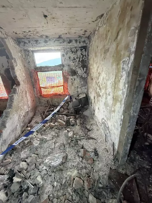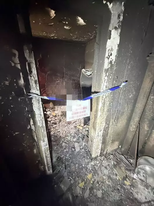 譚先生上到單位後所拍攝到的內部情況,損毁相當嚴重。居民提供圖片