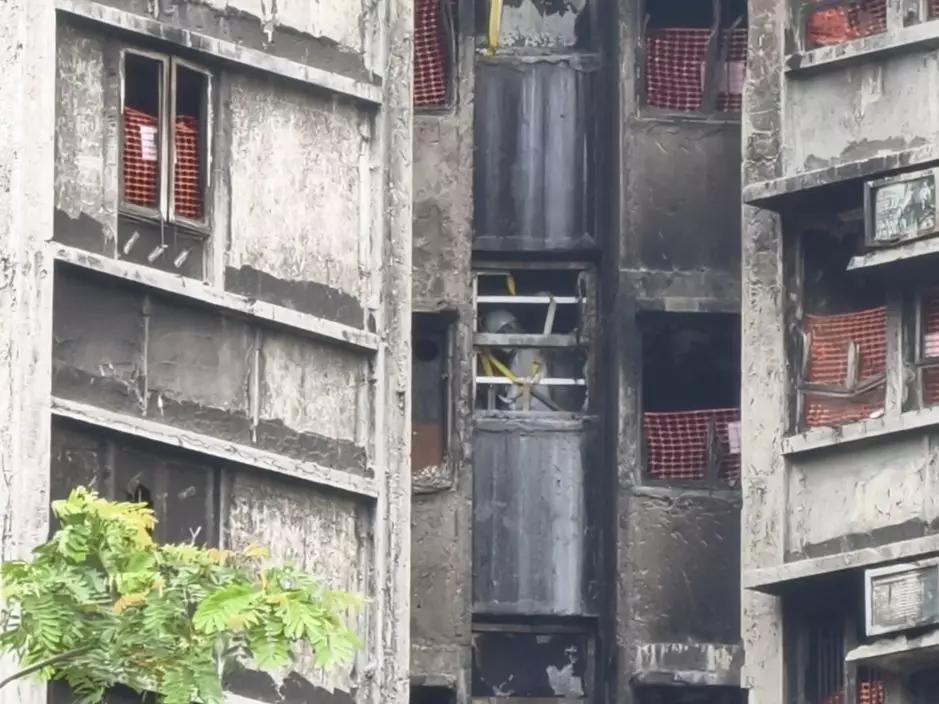 由單位窗口隱約可以見到居民在內執拾。巴士的報記者攝